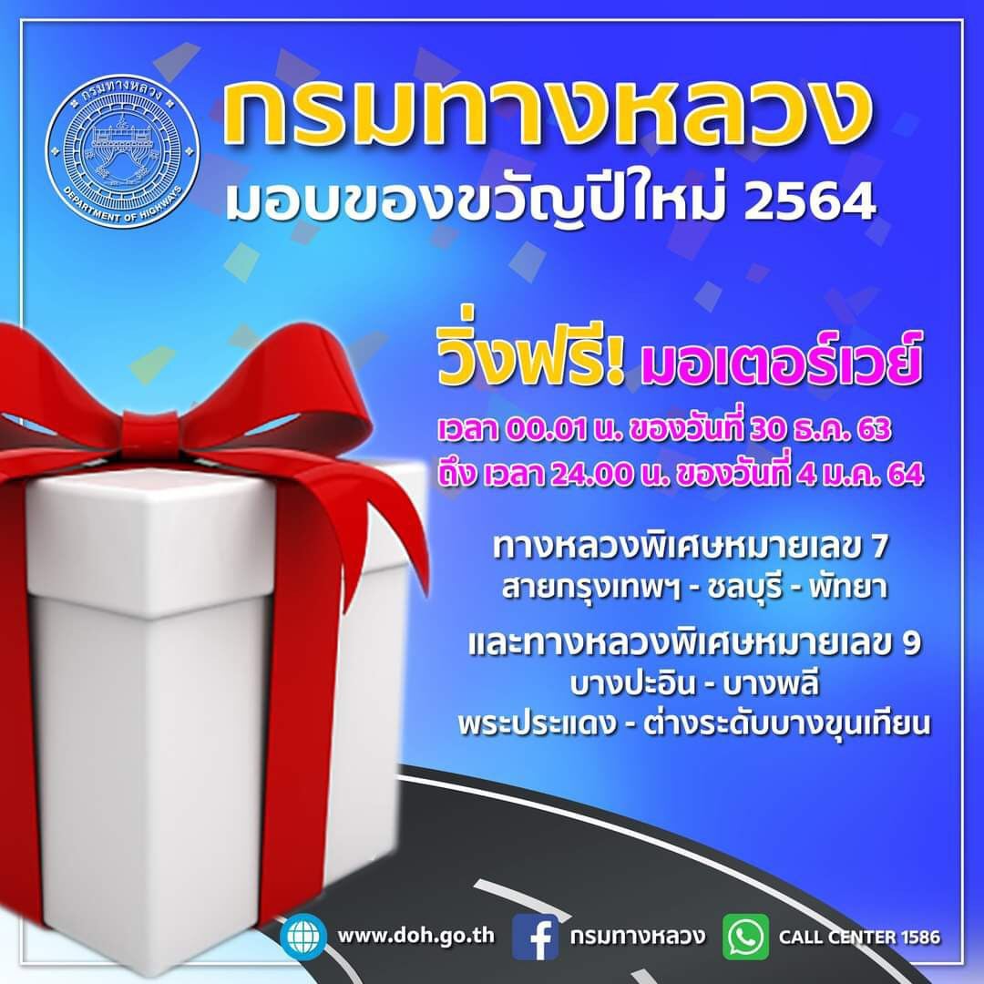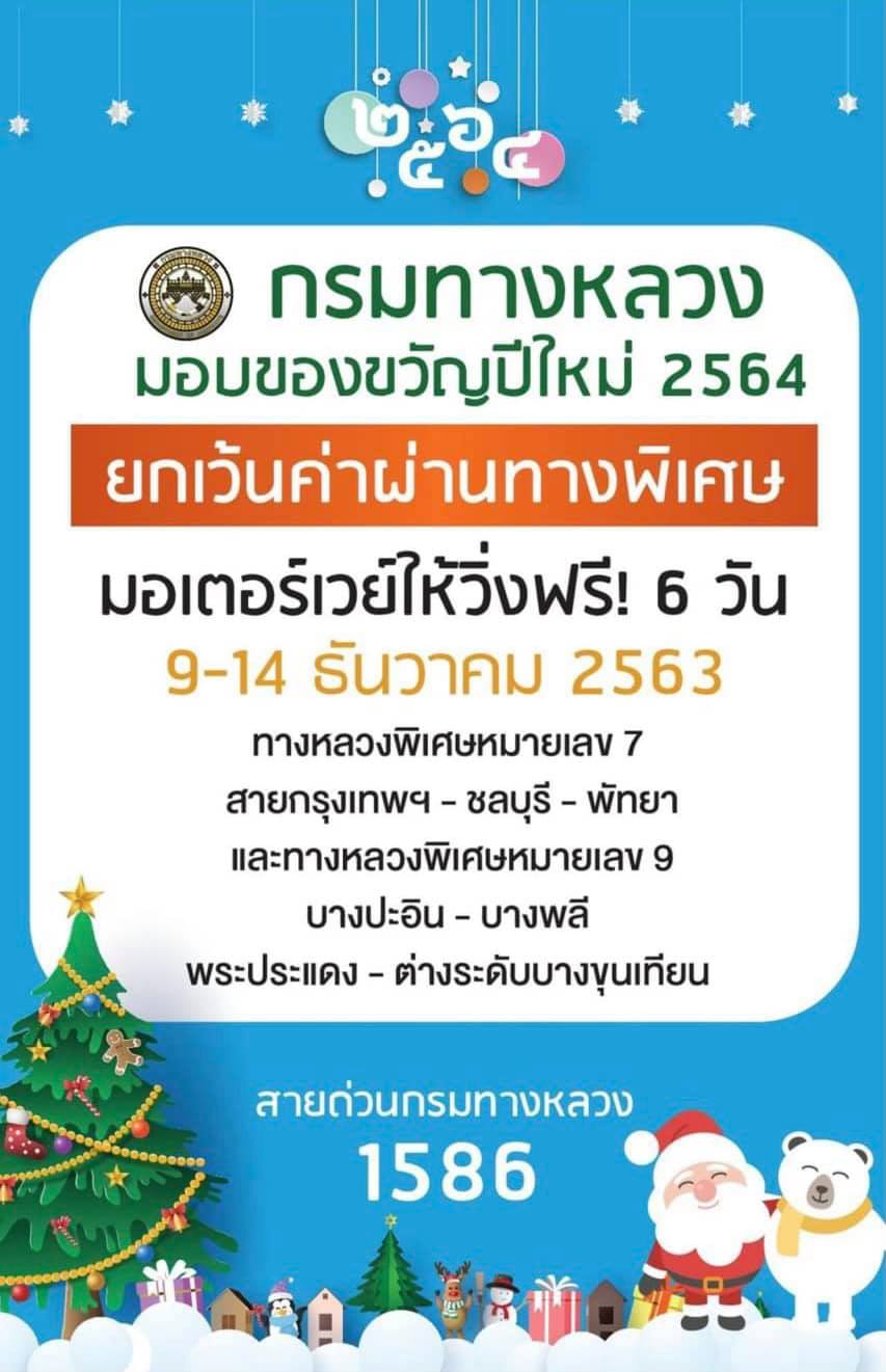 การทางพิเศษแห่งประเทศไทย ยกเว้นค่าผ่านทางพิเศษในช่วงวันหยุดพิเศษต่อเนื่องในเดือนธันวาคม
