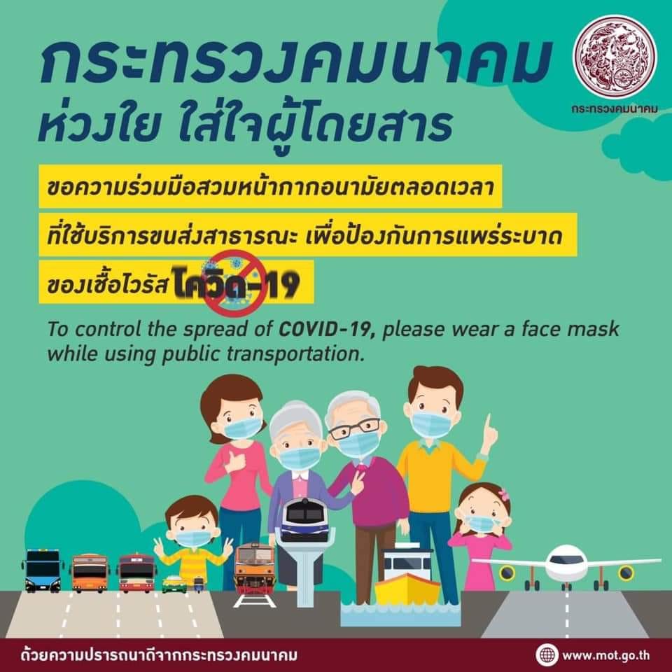 ขอความร่วมมือสวมหน้ากากอนามัยตลอดเวลาที่ใช้บริการขนส่งสาธารณะ เพื่อป้องกันการแพร่ระบาดของเชื้อไวรัส โควิด-19