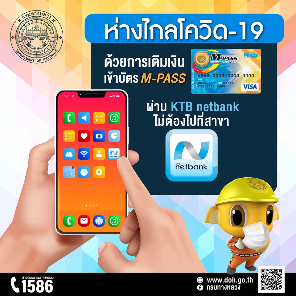 ด้วยความห่วงใย จากกรมทางหลวง เติมเงินเข้าบัตร M-PASS ผ่าน KTB netbank