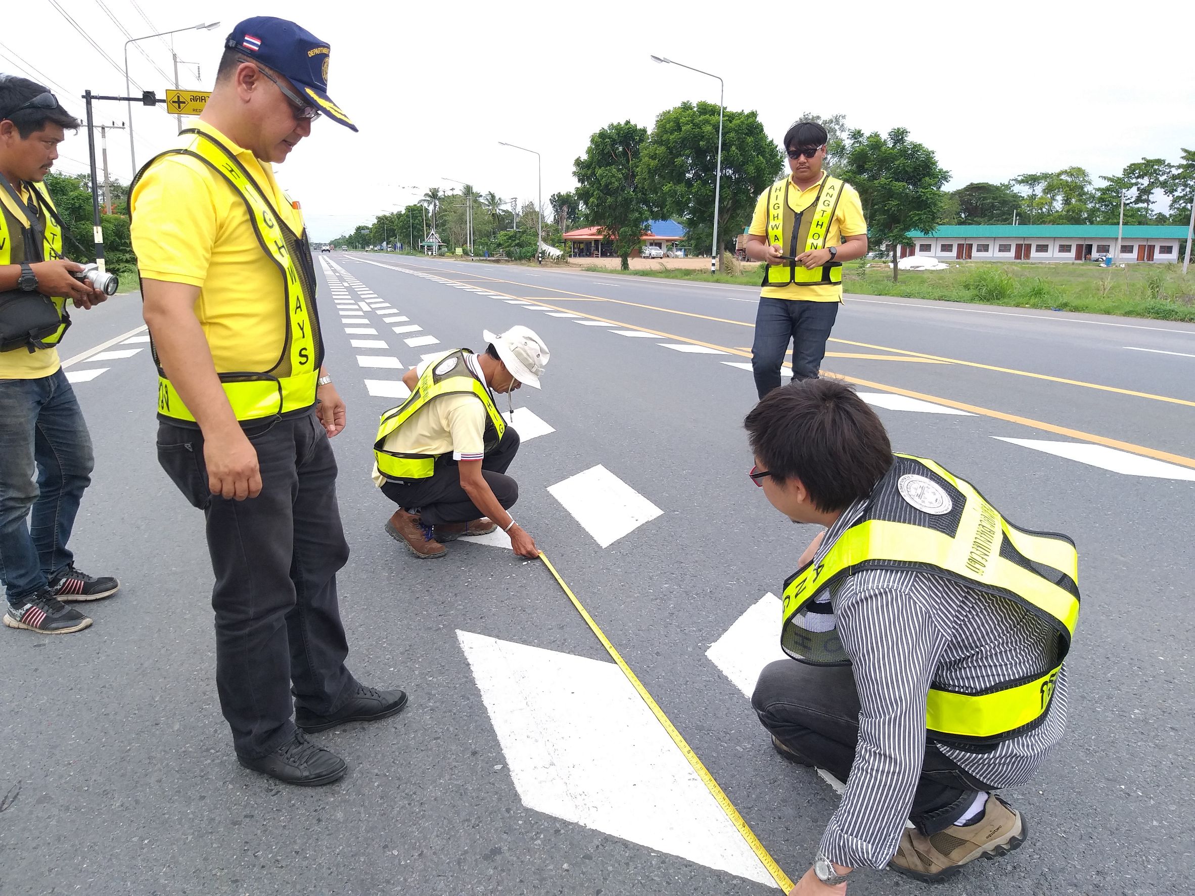 การตรวจรับงานจ้างเหมาทำการตีเครื่องหมายจราจรบนผิวทาง