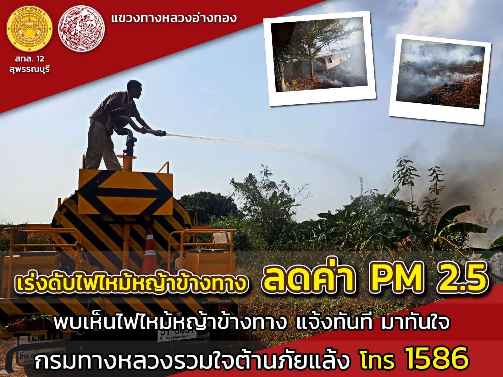กรมทางหลวง ห่วงใยสุขภาพพี่น้องประชาชน ร่วมลดฝุ่นละอองขนาดเล็ก PM 2.5