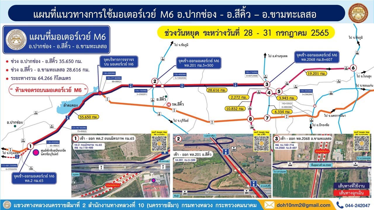 รมว.คมนาคมห่วงใยดูแลประชาชนต่อเนื่องช่วงหยุดยาว 28 -31 กรกฎาคม 2565 พร้อมเปิดให้บริการชั่วคราวเส้นทางมอเตอร์เวย์ M6 บางปะอิน-สระบุรี-นครราชสีมา ช่วง ปากช่อง - สีคิ้ว – ขามทะเลสอ เพื่ออำนวยความสะดวกปลอดภัยให้กับประชาชนในการเดินทาง
