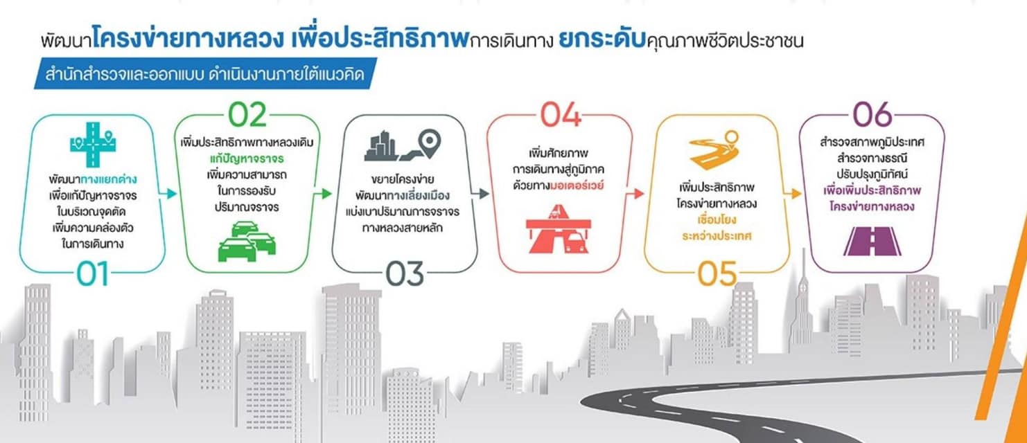 โดยนายประมณฑ์ สถาพรนานนท์ วิศวกรใหญ่ด้านสำรวจและออกแบบ ได้เปิดเผยว่าการจัดงานในครั้งนี้ สำนักสำรวจและออกแบบได้ดำเนินการภายใต้แนวคิดซึ่งประกอบไปด้วย แนวคิดที่ได้จะพัฒนาทางแยกต่าง เพื่อแก้ปัญหาจราจรในบริเวณจุดตัดเพิ่มความคล่องตัวในการเดินทาง แนวคิดในการเพิ่มประสิทธิภาพทางหลวงเดิม แก้ปัญหาจราจร เพิ่มความสามารถในการรองรับปริมาณจราจร แนวคิดที่จะขยายโครงข่ายพัฒนาทางเลี่ยงเมืองแบ่งเบาปริมาณการจราจรทางหลวงสายหลัก แนวคิดในการเพิ่มศักยภาพการเดินทางสู่ภูมิภาคด้วยทางมอเตอร์เวย์ และแนวคิดในการเพิ่มประสิทธิภาพโครงข่ายทางหลวงเชื่อมโยงระหว่างประเทศ สำรวจสภาพภูมิประเทศ สำรวจทางธรณี ปรับปรุงภูมิทัศน์เพื่อเพิ่มประสิทธิภาพโครงข่ายทางหลวง