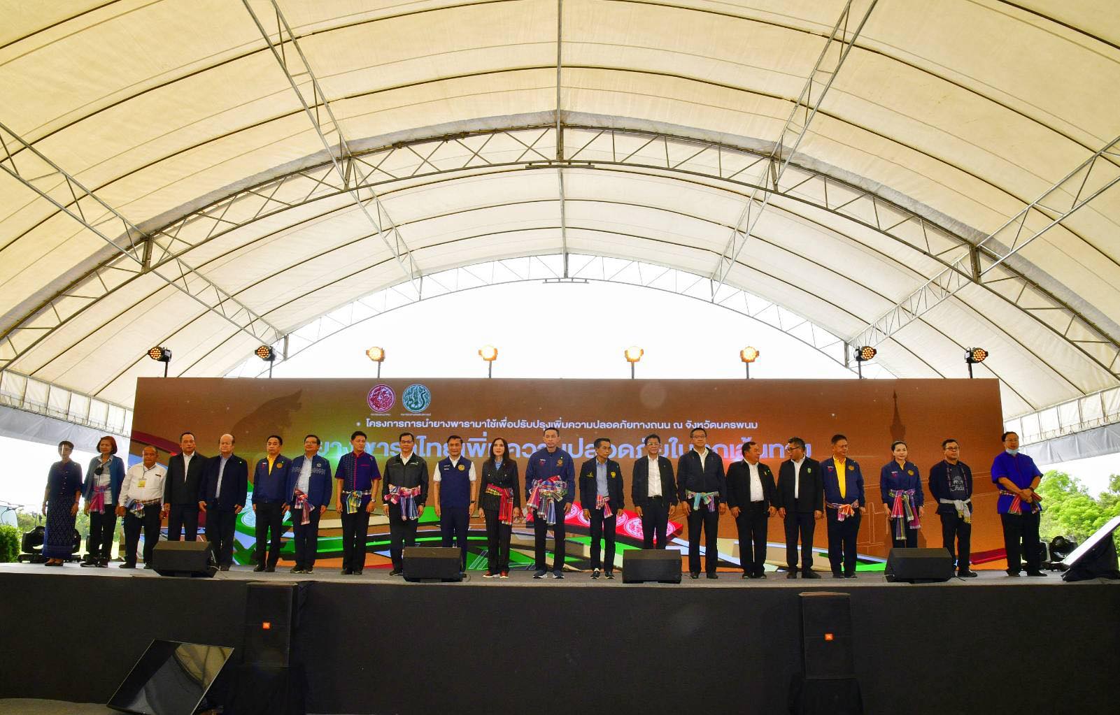 รัฐมนตรีว่าการกระทรวงคมนาคม เป็นประธานพิธีเปิดโครงการนำยางพารามาใช้เพื่อปรับปรุงเพิ่มความปลอดภัยทางถนน จังหวัดนครพนม