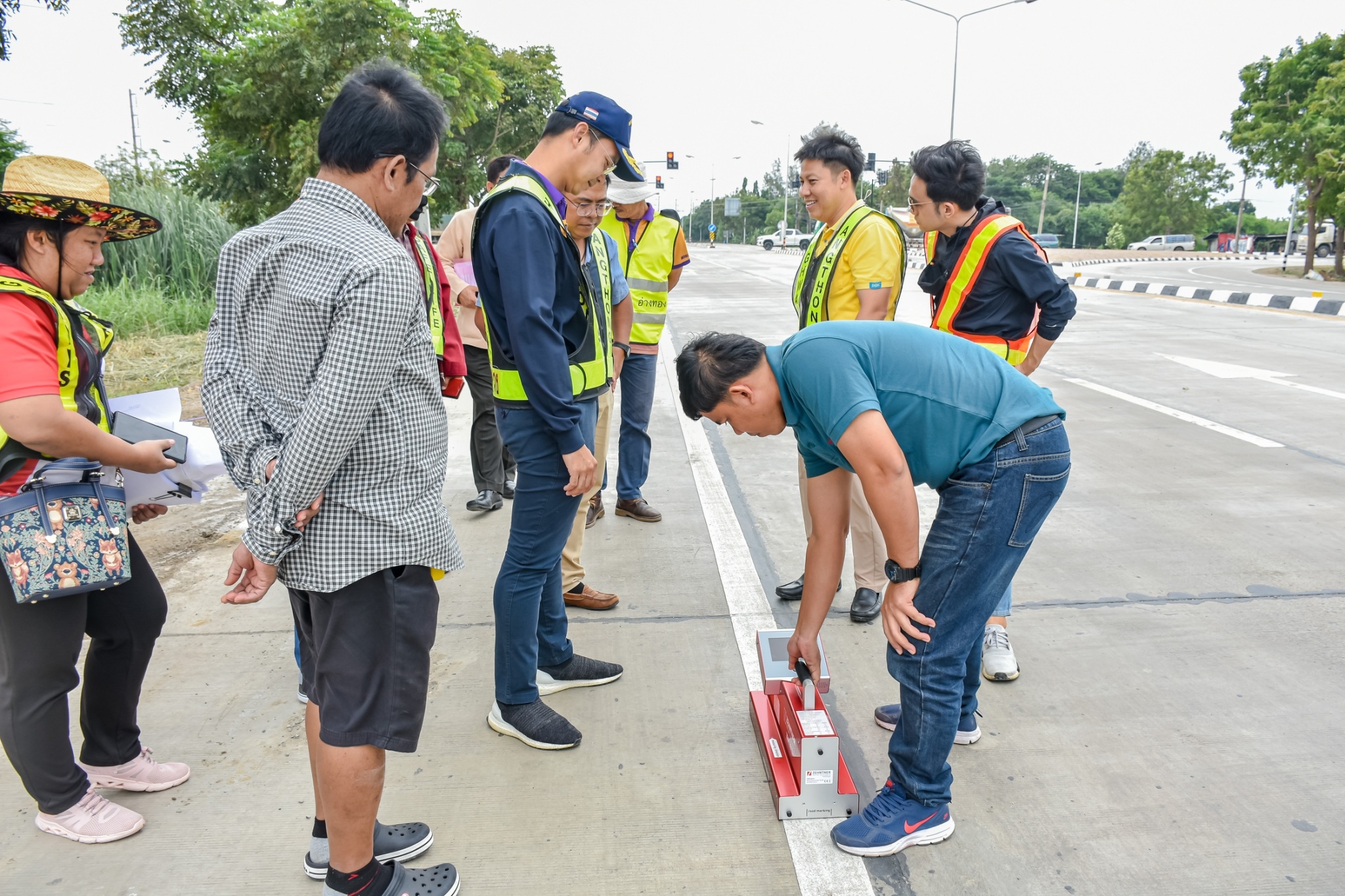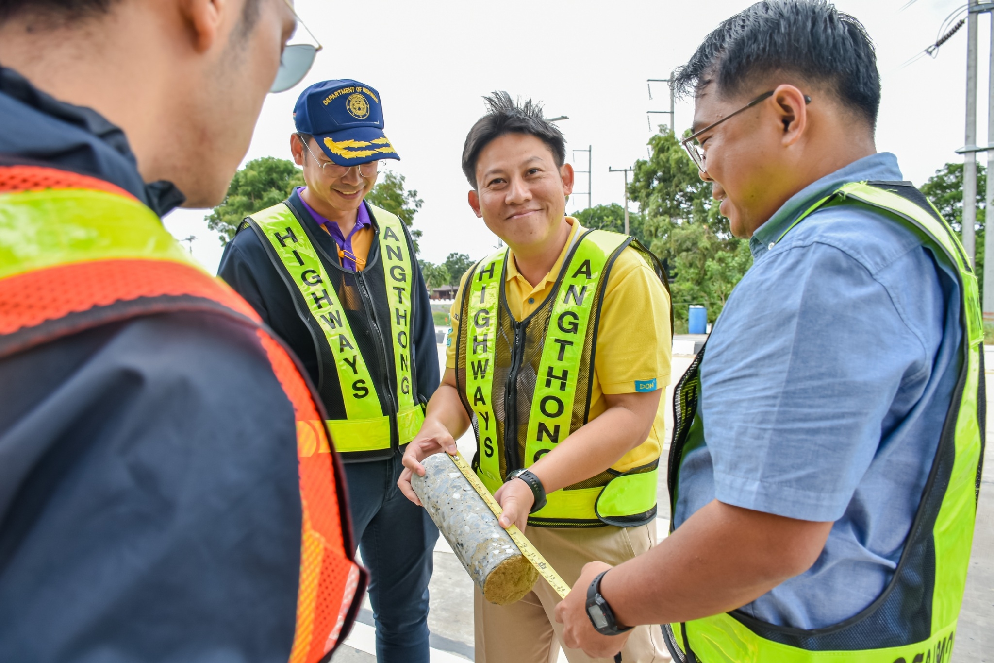 นายจตุพล เทพมังกร รส.ทล.12.1 ประทานคณะกรรมการตรวจรับพัสดุ พร้อมด้วย นายณัฐพร เนียมกลิ่น ผอ.ขท.อ่างทอง (กรรมการ) และคณะกรรมการการตรวจรับพัสดุร่วมตรวจรับงาน งานจ้างเหมาโครงการยกระดับความปลอดภัยบริเวณทางแยกขนาดใหญ่ ในทางหลวงหมายเลข 33 ตอน นาคู - ป่าโมก ระหว่าง กม.26+000 - กม.26+674 (บริเวณแยกหน้าโคก)