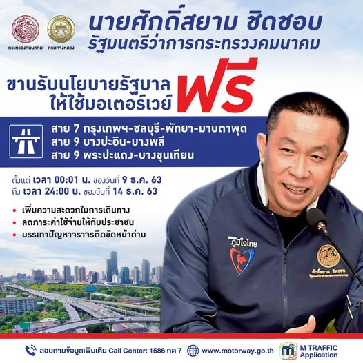 การทางพิเศษแห่งประเทศไทย (กทพ.) กระทรวงคมนาคม กำหนดยกเว้นค่าผ่านทางพิเศษ 2 สายทาง