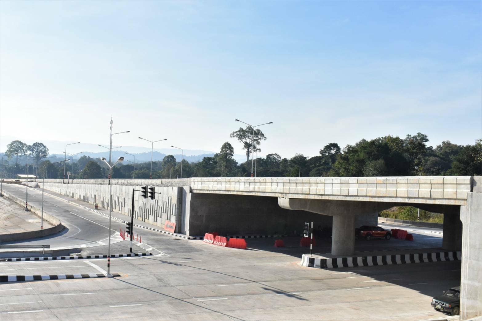 - โครงการก่อสร้างทางหลวงหมายเลข 1023 ระหว่าง กม.55+900 – 57+612.500 ระยะทาง 1.7 กิโลเมตร โดยออกแบบให้เป็นทางลอดใต้สะพานทางหลวงหมายเลข 11 ก่อสร้างตามมาตรฐานทางชั้นพิเศษ 4 ช่องจราจร ผิวทางแบบปอร์ตแลนด์ซีเมนต์คอนกรีต กว้างช่องละ 3.50 เมตร ไหล่ทางกว้างข้างละ 1.50 เมตร มีเกาะกลางแบบคอนกรีตแบริเออร์ และทางขนาน (Service Road) ติดตั้งไฟฟ้าแสงสว่างตลอดเส้นทาง