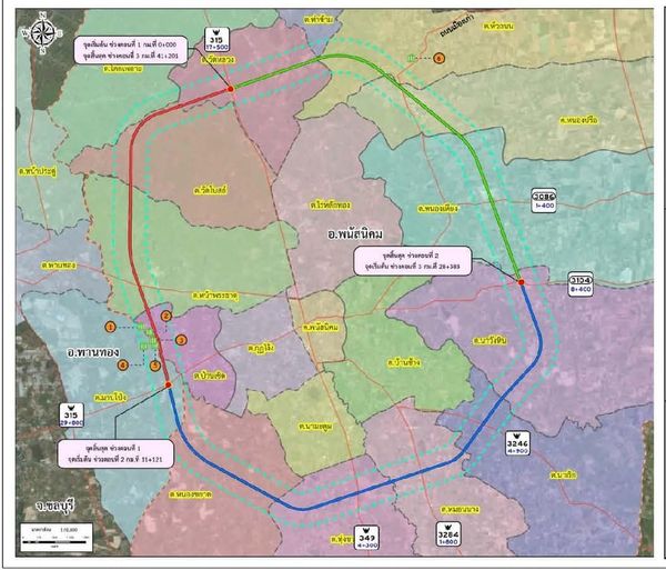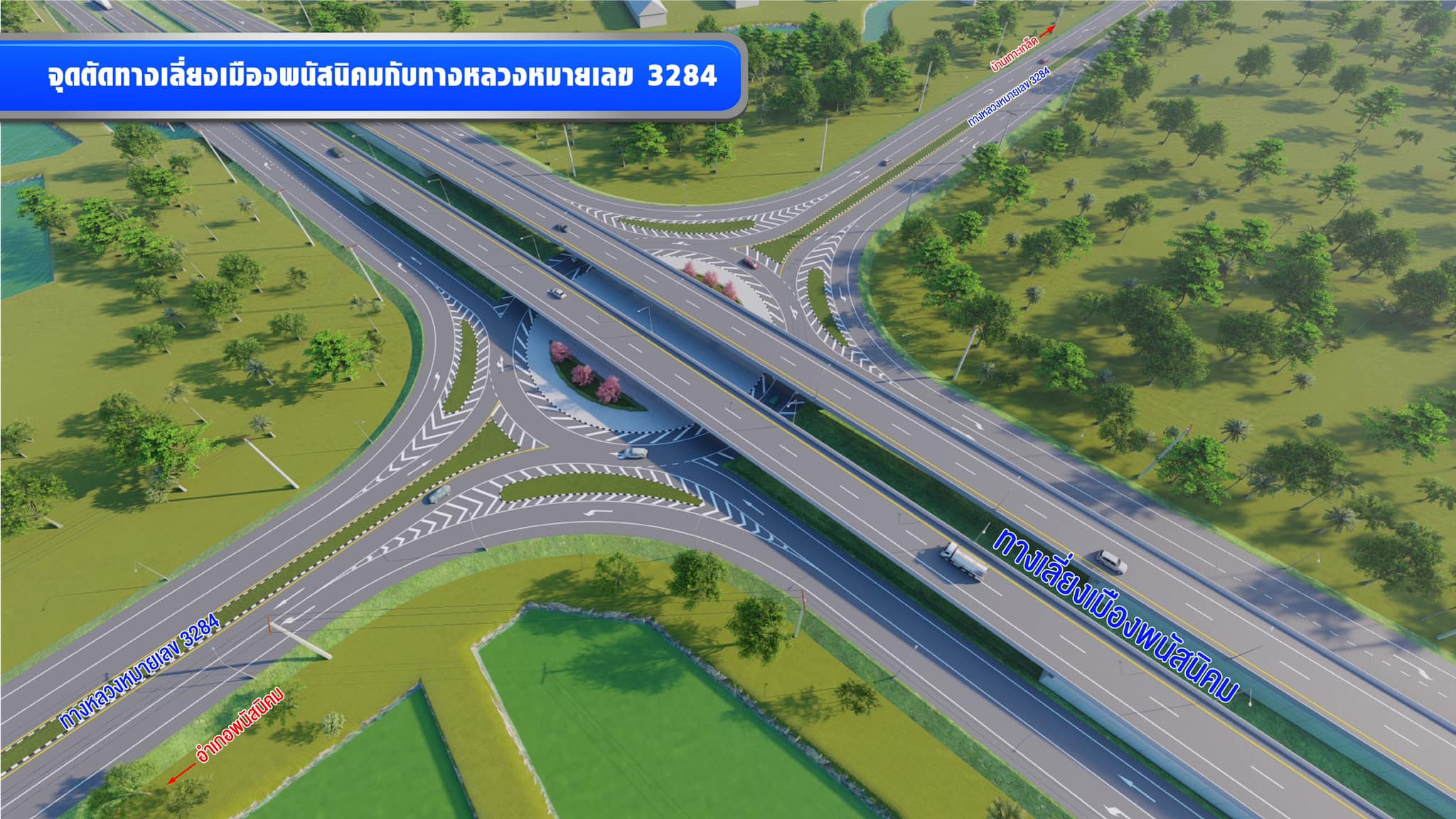 กรมทางหลวงออกแบบทางแนวใหม่สายเลี่ยงเมืองพนัสนิคม จ.ชลบุรี ช่วยบรรเทาปัญหาการจราจร พัฒนาโครงข่ายระบบคมนาคมขนส่งเส้นทางภูมิภาคและประตูการค้าระหว่างประเทศ