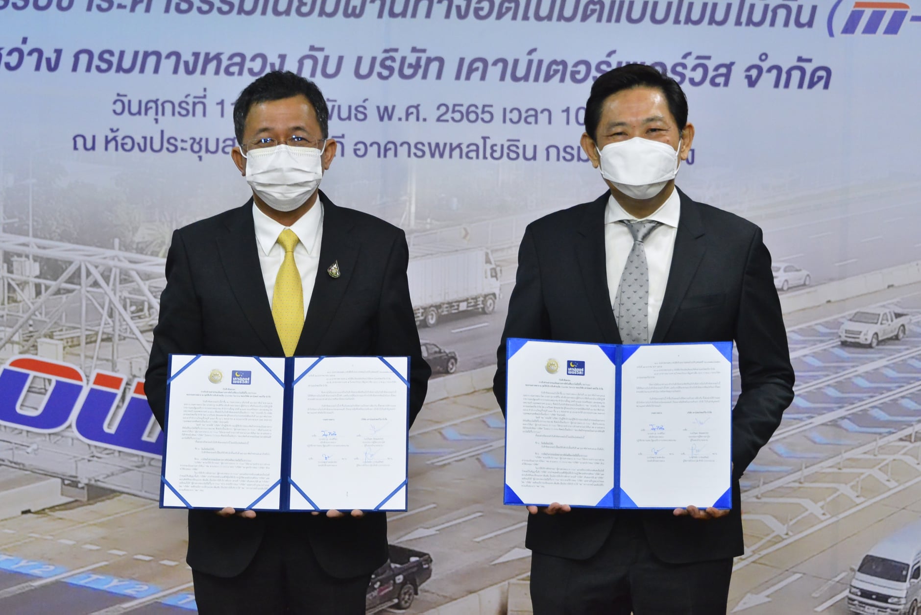 นายสราวุธ ทรงศิวิไล อธิบดีกรมทางหลวง (ทล.) เปิดเผยว่าสำหรับการเปิดให้ประชาชนลงทะเบียนเป็นสมาชิกเพื่อทดลองใช้บริการระบบจัดเก็บค่าธรรมเนียมผ่านทางอัตโนมัติแบบไม่มีไม้กั้น หรือ M-Flow และร่วมทดสอบเสมือนจริงที่เริ่มดำเนินการมาตั้งแต่เมื่อช่วงเดือนตุลาคม 2564 เป็นต้นมานั้น พบว่ามีผู้สนใจใช้ระบบ M-Flow เป็นจำนวนมาก กรมทางหลวงจึงจัดหากลุ่มพันธมิตรหรือองค์กรต่างๆ มาเพื่อร่วมพัฒนาและต่อยอดการให้บริการ สำหรับการลงนามร่วมกันในวันนี้ เป็นความร่วมมือกับบริษัท เคาน์เตอร์เซอร์วิส เพื่อให้บริการชำระค่าธรรมเนียมการใช้บริการ M-Flow ผ่านเคาน์เตอร์เซอร์วิสของร้าน 7-Eleven ทุกสาขากว่า 13,000 สาขา ตลอด 24 ชั่วโมง ครอบคลุมทุกพื้นที่ทั่วประเทศ เป็นการอำนวยความสะดวกในการชำระค่าธรรมเนียมการใช้บริการ M-Flow และตอบโจทย์ความต้องการของประชาชนได้เป็นอย่างดี นอกจากนี้ ยังพัฒนาขั้นตอนการตรวจสอบผู้หลีกเลี่ยงไม่ชำระค่าธรรมเนียมผ่านทางและการบังคับใช้กฎหมายให้มีประสิทธิภาพมากขึ้นด้าน นายธนศักดิ์ วงศ์ธนากิจเจริญ ผู้อำนวยการกองทางหลวงพิเศษระหว่างเมือง กรมทางหลวง กล่าวว่า กรมทางหลวงได้เปิดให้ผู้สนใจสมัครใช้บริการได้หลากหลายช่องทาง ทั้ง Website :