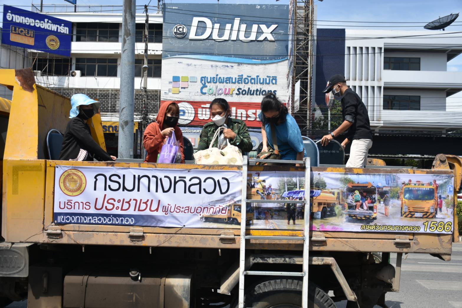 แขวงทางหลวงอ่างทอง จัดริการ รถรับ -ส่ง ประชาชนที่ประสบปัญหาน้ำท่วม
