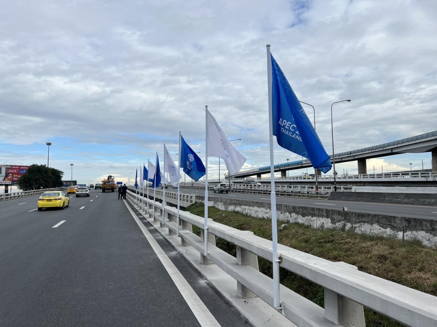 นอกจากนี้ แขวงทางหลวงในพื้นที่ได้ดำเนินการประดับธง APEC ในสายทางที่รับผิดชอบ จำนวน 2,204 ผืน และบนทางยกระดับอุตราภิมุข (ดอนเมืองโทลล์เวย์) จำนวน 88 ผืน พร้อมแสดงข้อความต้อนรับด้วยป้ายปรับเปลี่ยนข้อความ (VMS) จำนวน 46 ป้าย บนทางหลวงพิเศษหมายเลข 7 (กรุงเทพ – มาบตาพุด) และบนทางหลวงพิเศษหมายเลข 9 (บางปะอิน - บางพลี) ซึ่งในช่วงวันหยุดยาวระหว่างวันที่ 16 – 20 พฤศจิกายน 2565 รวม 5 วัน สำนักอำนวยความปลอดภัย กรมทางหลวง คาดการณ์ปริมาณจราจรบนทางหลวงสายหลัก 10 เส้นทาง และบนมอเตอร์เวย์รวมทั้งสิ้นจำนวน 4,932,879 คัน แบ่งเป็นฝั่งขาเข้ากรุงเทพ 2,509,404 คัน และฝั่งขาออกกรุงเทพ 2,423,475 คัน