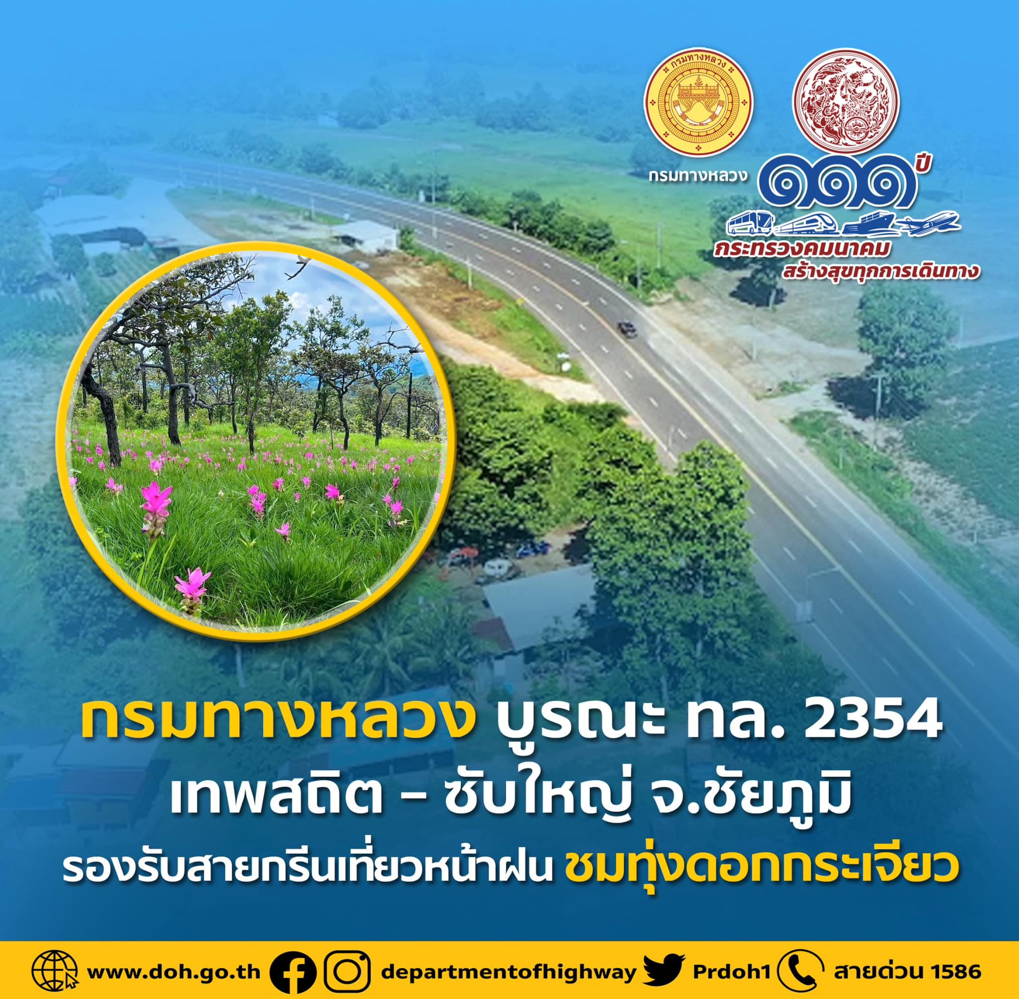 กรมทางหลวง บูรณะทางหลวงหมายเลข 2354 เทพสถิต – ซับใหญ่ จ.ชัยภูมิ รองรับสายกรีนเที่ยวหน้าฝน ชมทุ่งดอกกระเจียว
