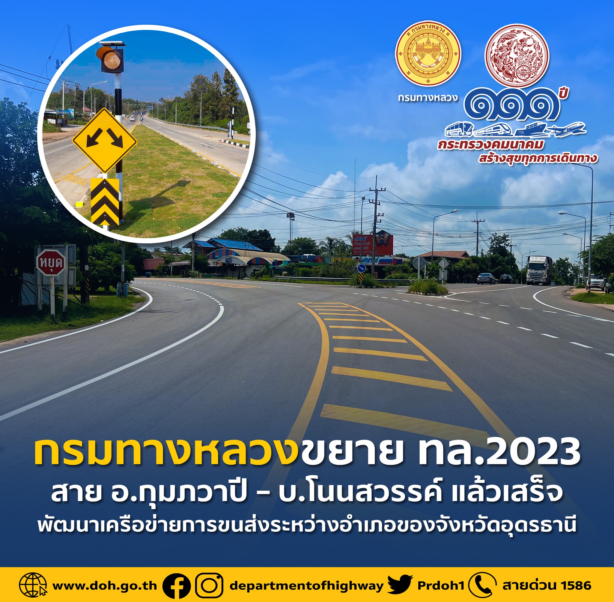 กรมทางหลวง โดยสำนักก่อสร้างทางที่ 2 ได้ดำเนินโครงการก่อสร้างขยายไหล่ทาง บนทางหลวงหมายเลข 2023 สาย อ.กุมภวาปี – บ.โนนสวรรค์ ในพื้นที่ อ.กุมภวาปี จ.อุดรธานี แล้วเสร็จ ระยะทางยาว 20 กิโลเมตร เพื่อเป็นการเพิ่มประสิทธิภาพในการเดินทางและรองรับการจราจรที่เพิ่มขึ้นในอนาคต ให้มีความสะดวก รวดเร็ว และปลอดภัยในการเดินทาง ทั้งยังช่วยพัฒนาเศรษฐกิจและการท่องเที่ยวของประเทศ