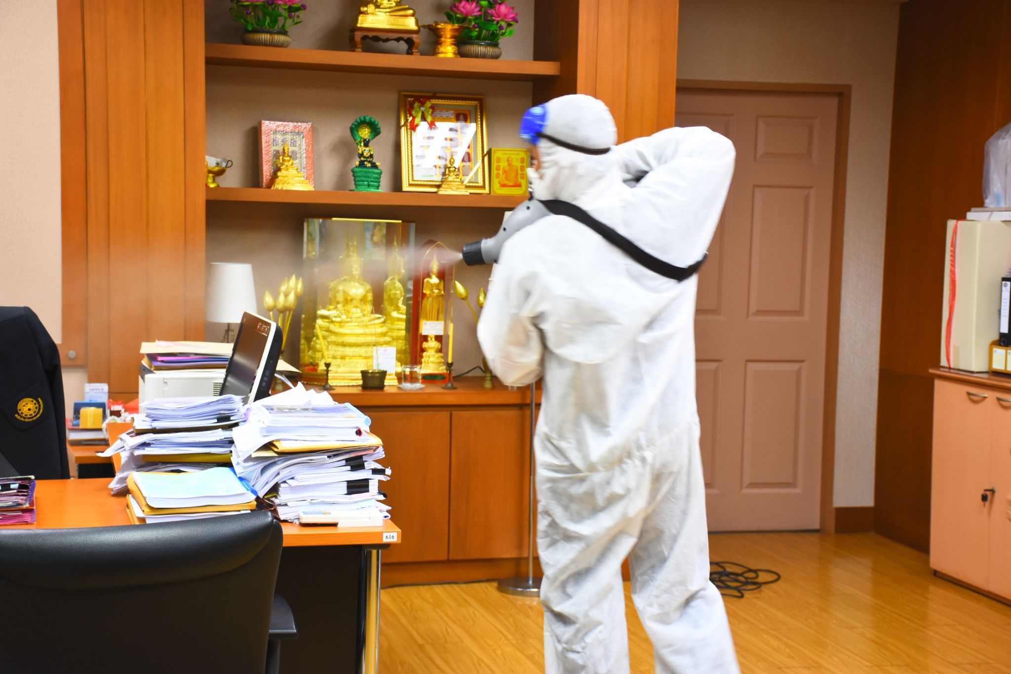 กรมทางหลวงดำเนินการฉีดพ่นน้ำยาฆ่าเชื้อไวรัส COVID - 19 ตามมาตรการป้องกันและควบคุมเชื้อไวรัสของกรม โดยในเบื้องต้นเจ้าหน้าที่ได้ฉีดพ่นน้ำยาฆ่าเชื้อ โดยใช้เครื่องพ่นยาความดันสูง บริเวณภายในกรมและอาคารสำนักงานทั้งหมดเพื่อป้องกันการแพร่ระบาดของเชื้อไวรัส COVID - 19