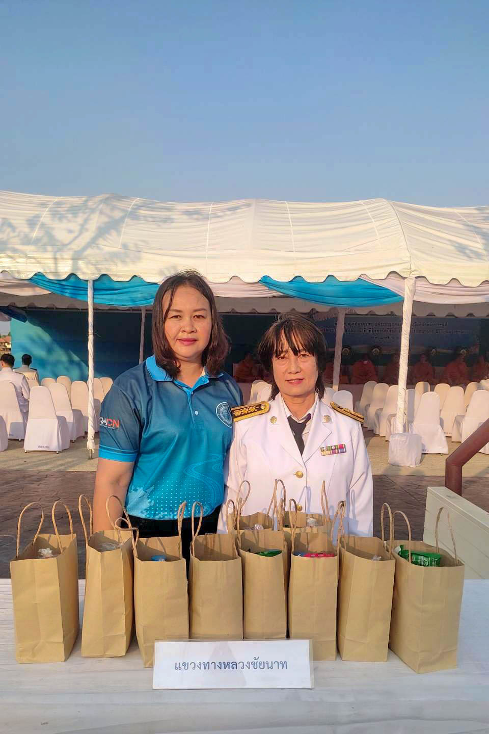 เวลา 07.30 น. พิธีทำบุญตักบาตรถวายพระราชกุศล ณ บริเวณเขื่อนเรียงหิน หน้าศาลากลางจังหวัดชัยนาท โดยมี นายนที มนตริวัต ผู้ว่าราชการจังหวัดชัยนาท เป็นประธานในพิธี