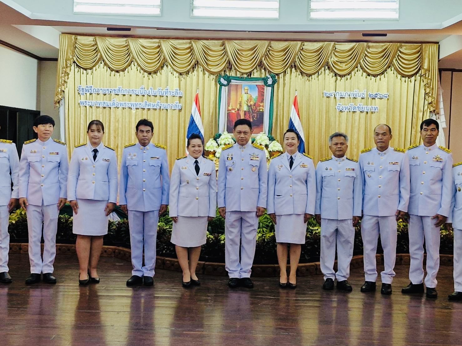 เวลา 08.00 น. นายสุรศักดิ์ พูลทรัพย์ ผู้อำนวยการแขวงทางหลวงชัยนาท มอบหมายให้นางสาวนาถนภา นราอมรกิจ นางพัทธนันท์ เกตุประทุม เข้าร่วมพิธีถวายเครื่องราชสักการะ วางพานพุ่มดอกเนื่องใน “วันที่ระลึกพระบาทสมเด็จพระพุทธเลิศหล้านภาลัย" ประจำปี 2568 ณ อาคารวิมลคุณากร ศาลากลางจังหวัดชัยนาท โดยมี นายวิทยา ชพานนท์ รองผู้ว่าราชการจังหวัดชัยนาท เป็นประธานในพิธี