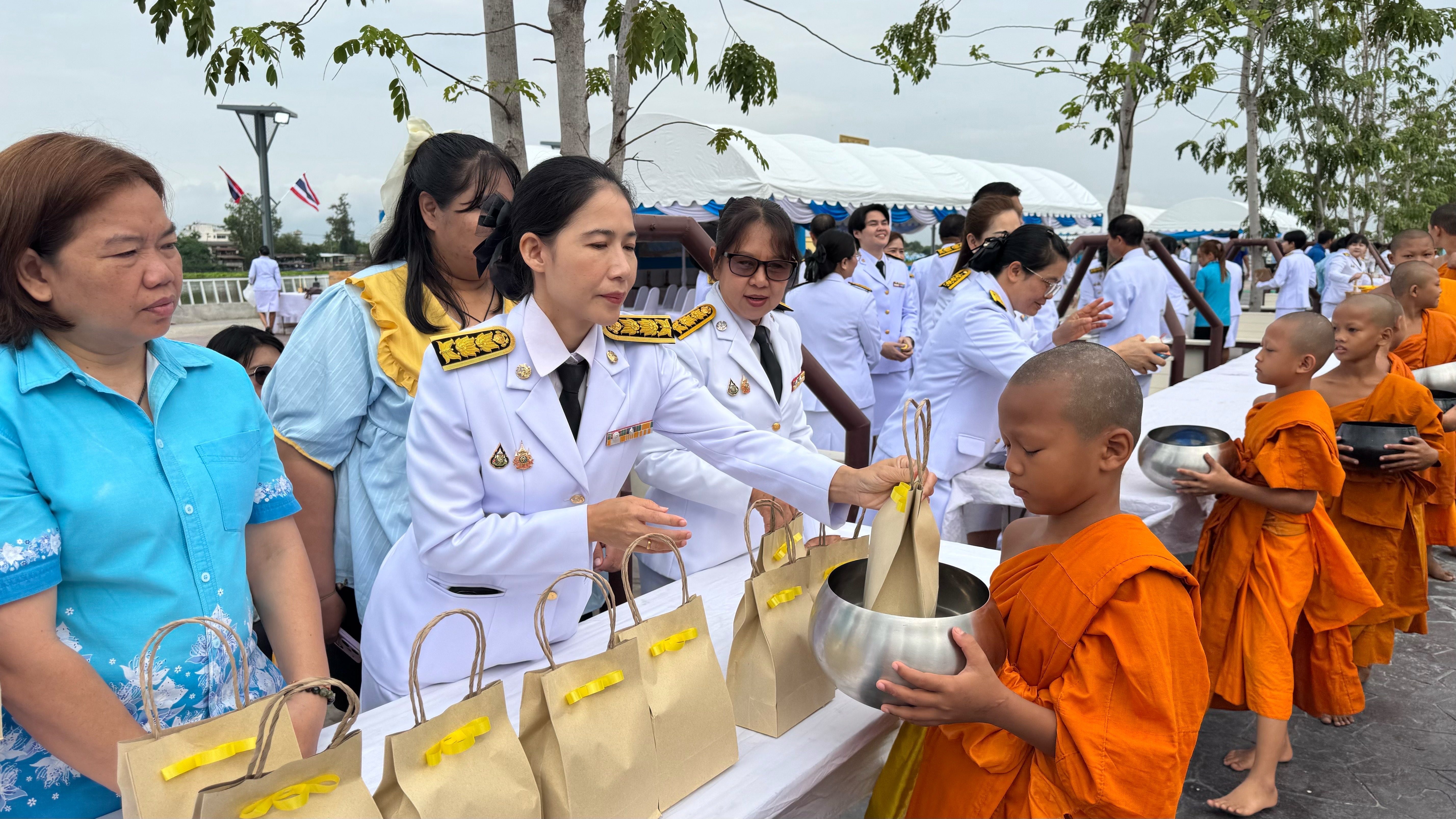 เวลา 07.30 น. พิธีทำบุญตักบาตรถวายพระราชกุศล ณ บริเวณเขื่อนเรียงหิน หน้าศาลากลางจังหวัดชัยนาท โดยมี นายนที มนตริวัต ผู้ว่าราชการจังหวัดชัยนาท เป็นประธานในพิธี