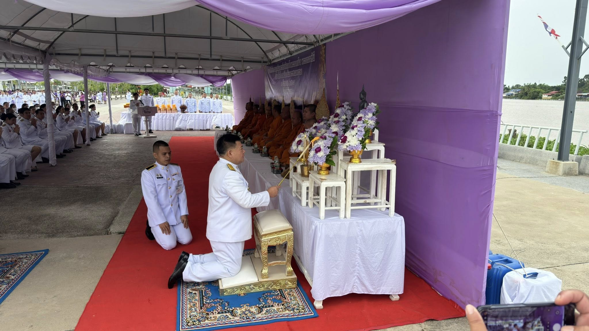เวลา 07.00 น. พิธีเจริญพระพุทธมนต์และพิธีทำบุญตักบาตรถวายพระราชกุศล ณ บริเวณเขื่อนเรียงหิน หน้าศาลากลางจังหวัดชัยนาท โดยมี นายนที มนตริวัต ผู้ว่าราชการจังหวัดชัยนาท เป็นประธาน