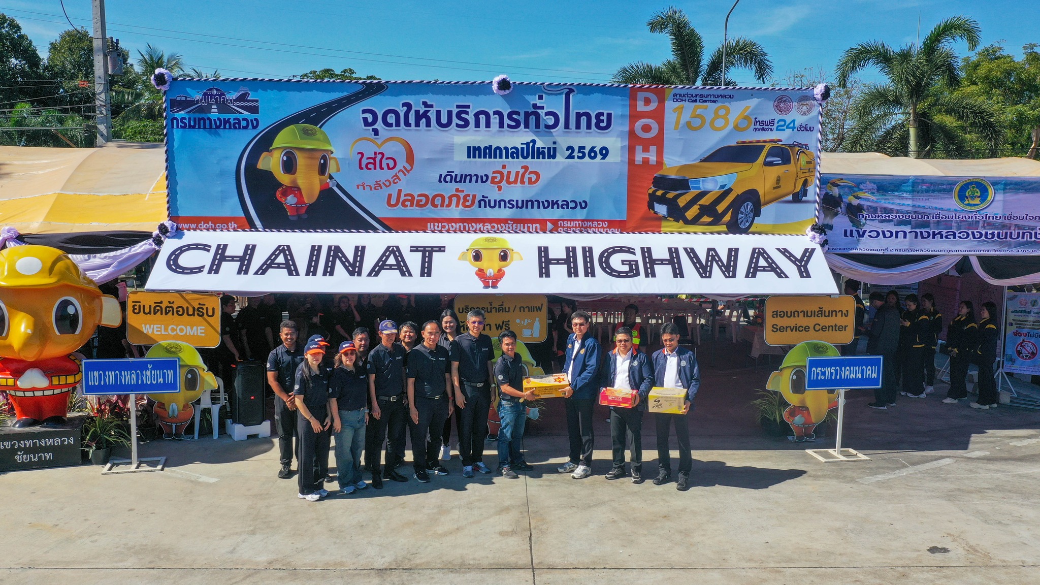 เวลา 11.00 น. นายจิรวัฒน์ ทรงผาสุข ผู้อำนวยการสำนักงานทางหลวงที่12 สุพรรณบุรี เป็นประธานในพิธีเปิด “ศูนย์อำนวยความสะดวกและปลอดภัยทางถนนช่วงเทศกาลปีใหม่ 2569“ ของแขวงทางหลวงชัยนาท โดยมี นายสมโภช โอทาตะ รองผู้อำนวยการสำนักงานทางหลวงที่ 12.2 , นายเชาวลิต นาประจุล ผู้อำนวยการส่วนตรวจสอบและวิเคราะห์ฯ นายสุรศักดิ์ พูลทรัพย์ ผู้อำนวยการแขวงทางหลวงชัยนาท ผู้บริหารและเจ้าหน้าที่แขวงทางหลวงชัยนาท พร้อมด้วยตำรวจทางหลวง แขวงทางหลวงชนบทชัยนาท ให้เกียรติเข้าร่วมพิธีเปิดศูนย์ฯ อย่างพร้อมเพรียง ณ บริเวณจุดพักรถอู่ตะเภา บนทางหลวงหมายเลข 32 ตอน โพนางดำออก - ท่าฉนวน ที่ กม.137+650 (ขาออก กทม.)