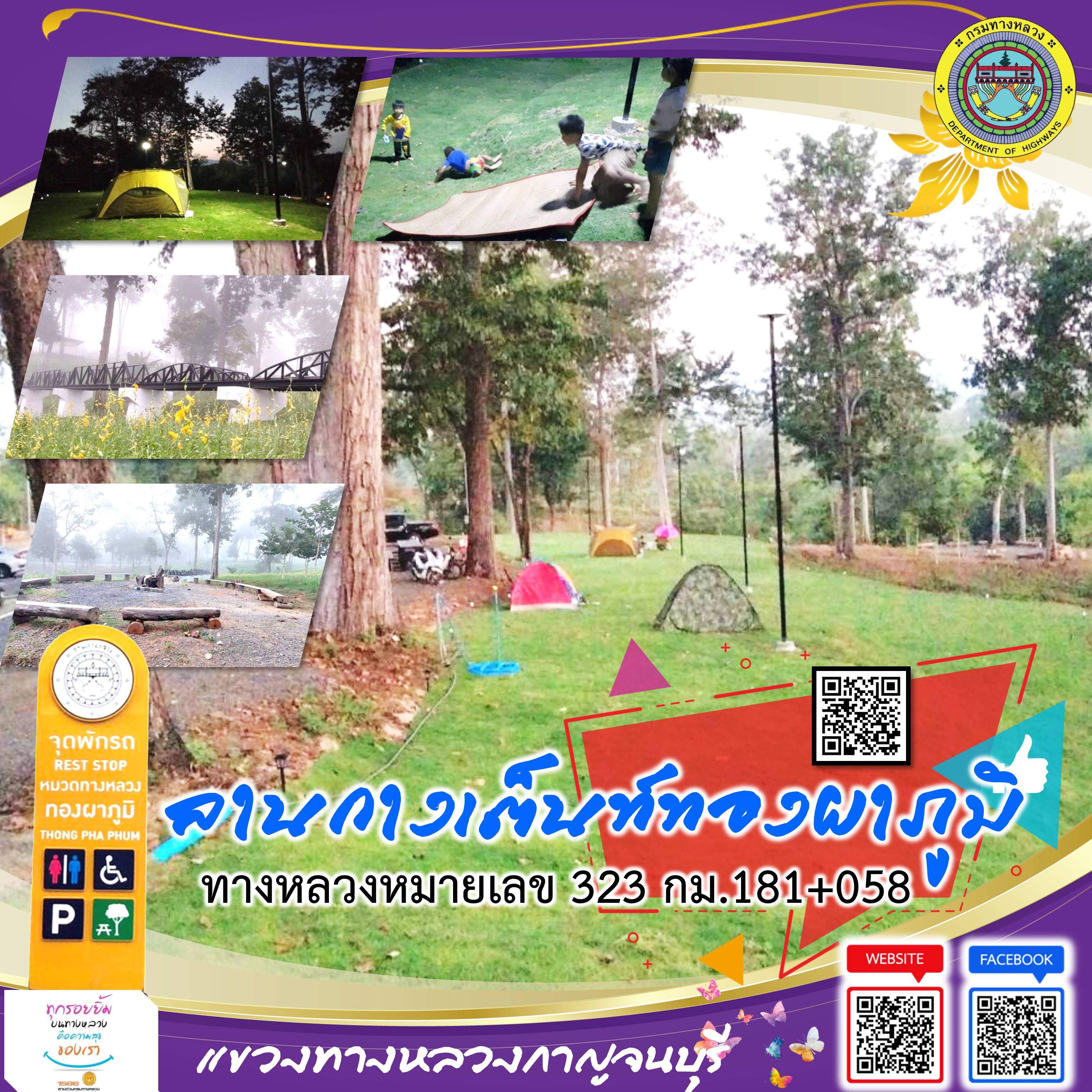 แขวงทางหลวงกาญจนบุรี ได้จัดเตรียมจุดบริการลานกางเต็นท์ จุดพักรถ ห้องน้ำ และสอบถามข้อมูลต่างๆ สำหรับนักท่องเที่ยวแวะพักใช้บริการ โดยมีเจ้าหน้าที่พร้อมบริการตลอด 24 ชั่วโมง ในช่วงเทศกาลต้อนรับปีใหม่ 2565