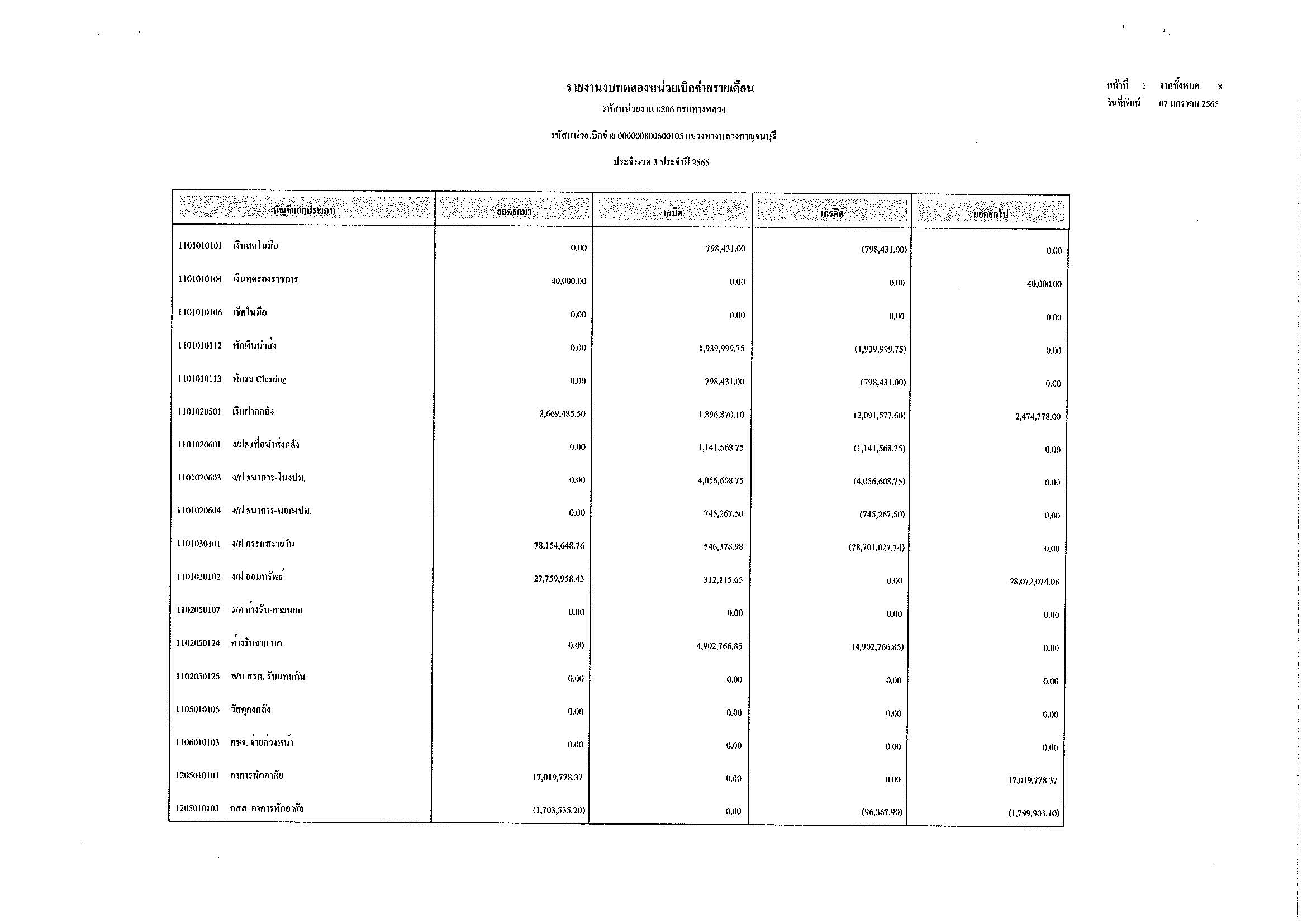 รายงานงบทดลองหน่วยเบิกจ่ายรายเดือน ประจำงวด 3 ประจำปีที่ 2565