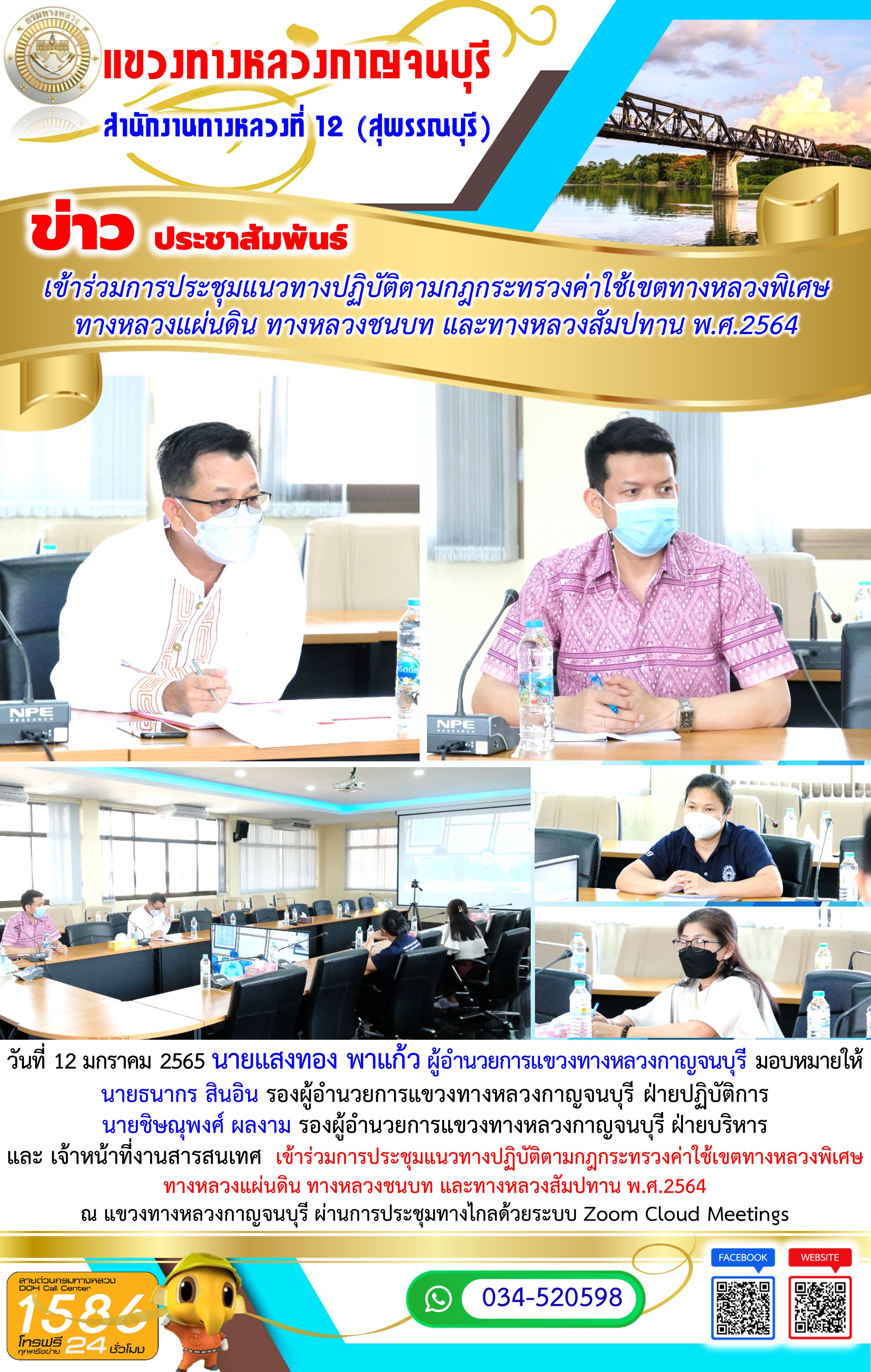 เข้าร่วมการประชุมแนวทางปฏิบัติตามกฎกระทรวงค่าใช้เขตทางหลวงพิเศษ ทางหลวงแผ่นดิน ทางหลวงชนบท และทางหลวงสัมปทาน พ.ศ.2564 ณ แขวงทางหลวงกาญจนบุรี ผ่านการประชุมทางไกลด้วยระบบ Zoom Cloud Meetings