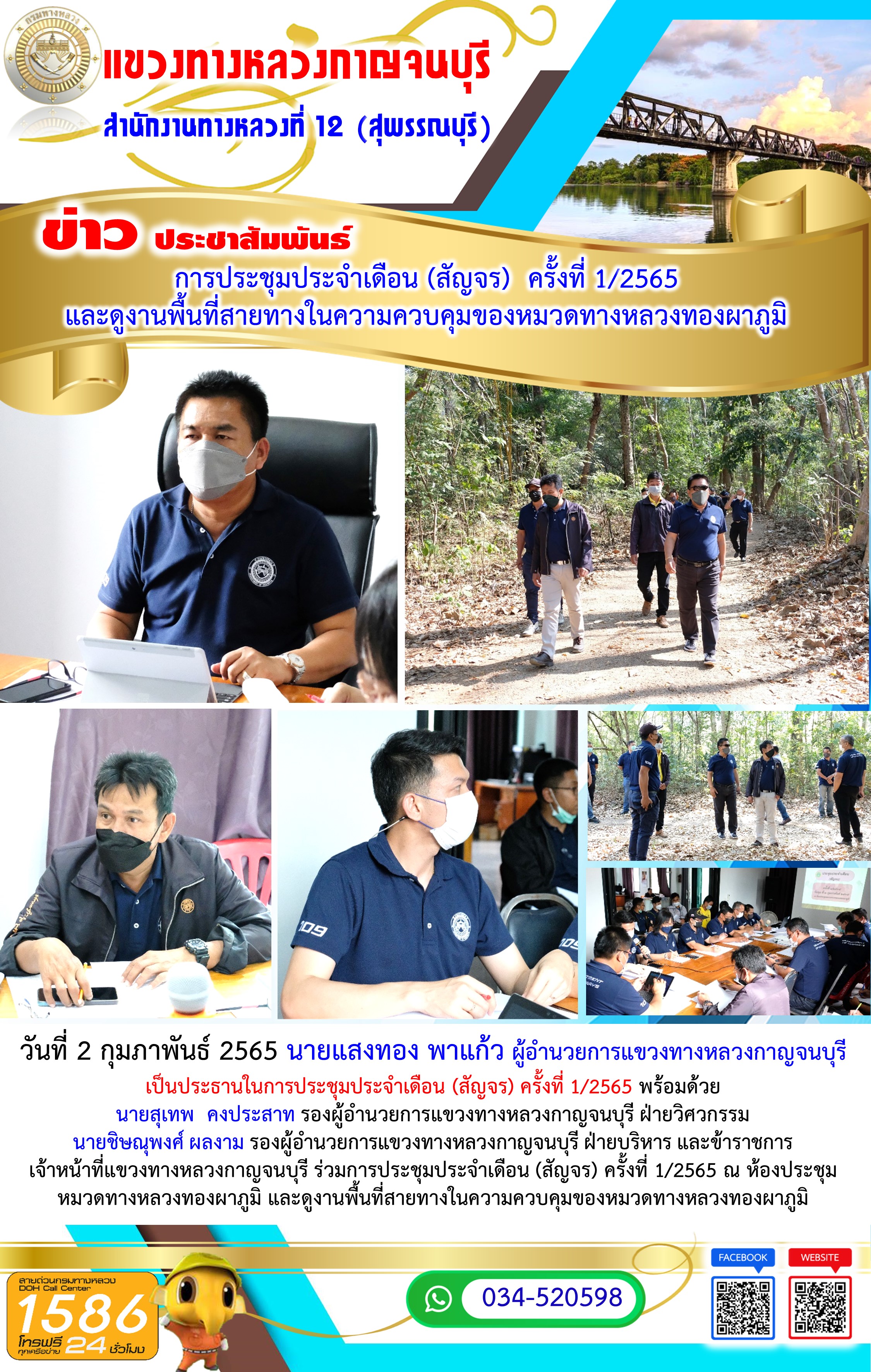 ร่วมการประชุมประจำเดือน (สัญจร) ครั้งที่ 1/2565 ณ ห้องประชุม หมวดทางหลวงทองผาภูมิ และดูงานพื้นที่สายทางในความควบคุมของหมวดทางหลวงทองผาภูมิ