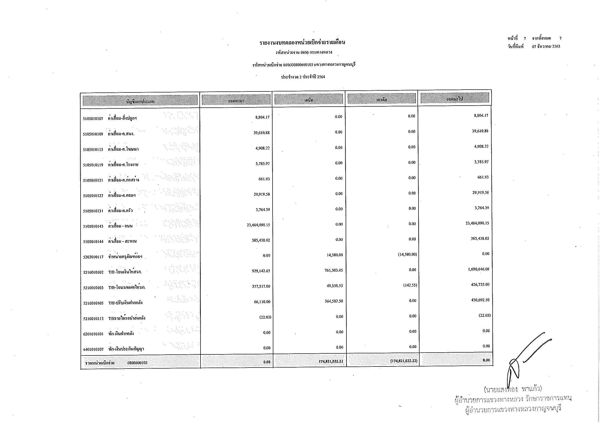 รายงานงบทดลองหน่วยเบิกจ่ายรายเดือน ประจำงวด 2 ประจำปีที่ 2564