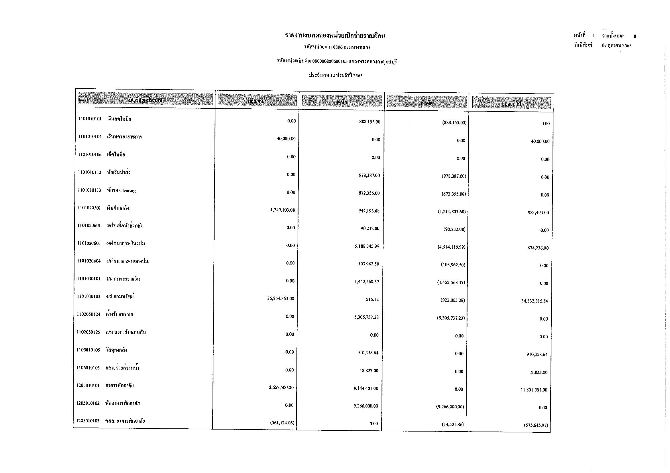 รายงานงบทดลองหน่วยเบิกจ่ายรายเดือน ประจำงวด 12 ประจำปีที่ 2563