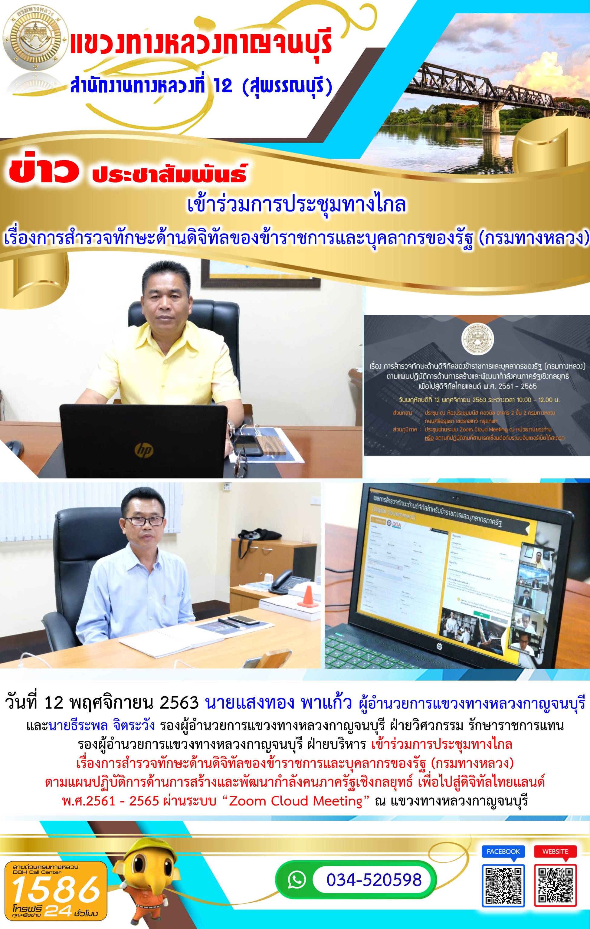 เข้าร่วมการประชุมทางไกล เรื่องการสำรวจทักษะด้านดิจิทัลของข้าราชการและบุคลากรของรัฐ (กรมทางหลวง)