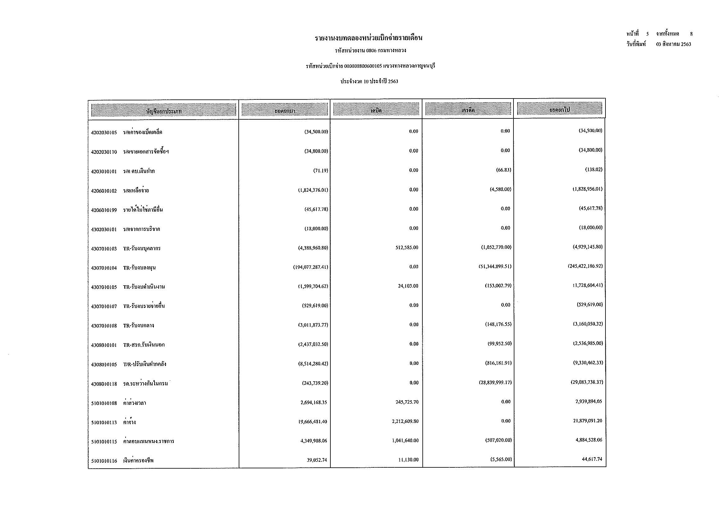 รายงานงบทดลองหน่วยเบิกจ่ายรายเดือน ประจำงวด 10 ประจำปีที่ 2563