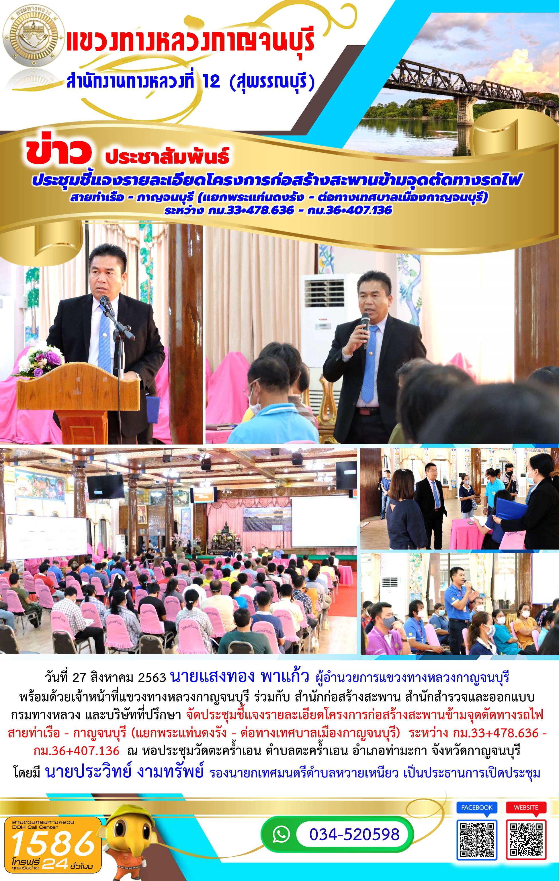 ประชุมชี้แจงรายละเอียดโครงการก่อสร้างสะพานข้ามจุดตัดทางรถไฟ สายท่าเรือ - กาญจนบุรี (แยกพระแท่นดงรัง - ต่อทางเทศบาลเมืองกาญจนบุรี) ระหว่าง กม.33+478.636 - กม.36+407.136