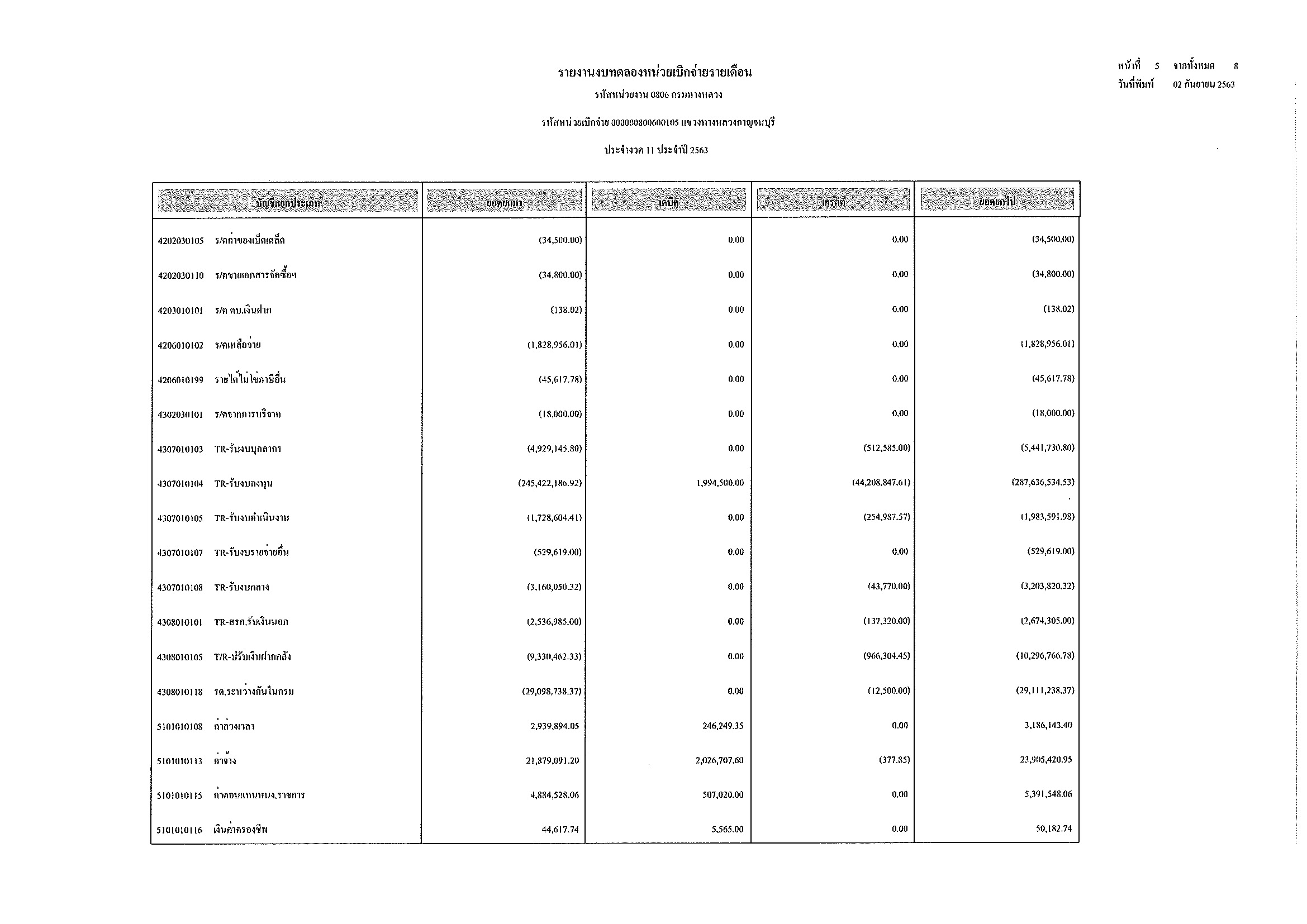 รายงานงบทดลองหน่วยเบิกจ่ายรายเดือน ประจำงวด 11 ประจำปีที่ 2563