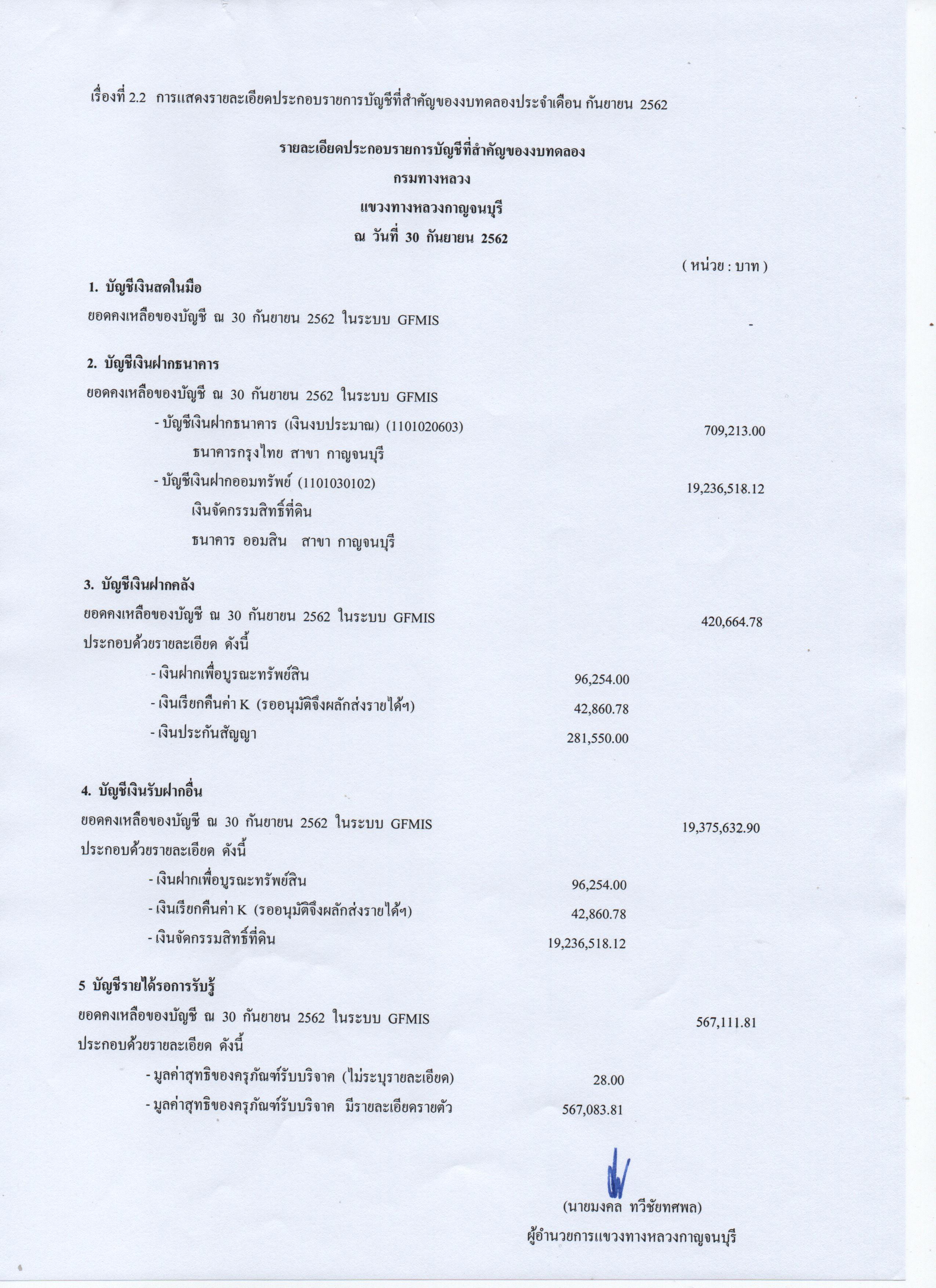 รายงานงบทดลองหน่วยเบิกจ่ายประจำปี 2562