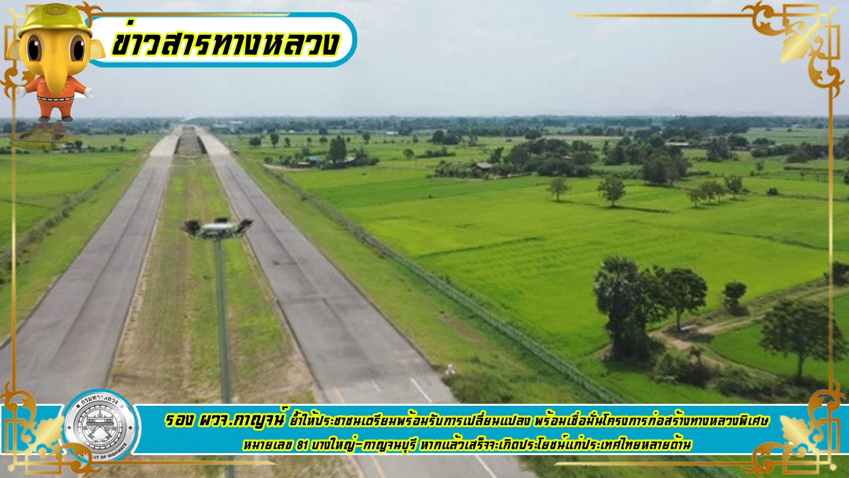 รองผู้ว่าราชการจังหวัดกาญจนบุรีแนะให้ประชาชนเตรียมพร้อมรับการเปลี่ยนแปลง หลังทางหลวงพิเศษหมายเลข 81 บางใหญ่-กาญจนบุรีเกิดประโยชน์แก่ประเทศไทยหลายด้าน