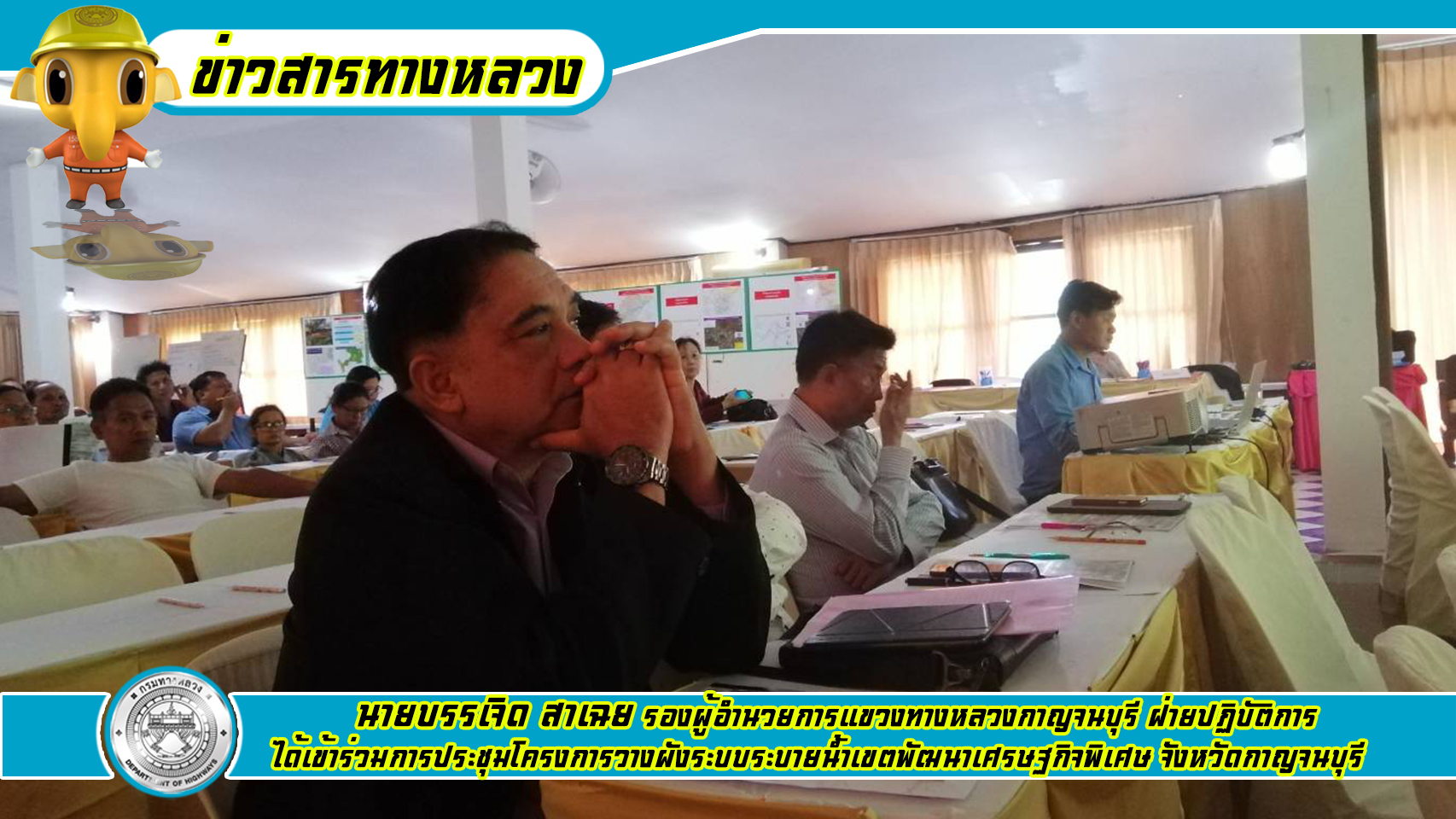 654 22/02/2562 นายบรรเจิด สาเฉย รองผู้อำนวยการแขวงทางหลวงกาญจนบุรี ฝ่ายปฏิบัติการ ได้เข้าร่วมการประชุมโครงการวางผังระบบระบายน้ำเขตพัฒนาเศรษฐกิจพิเศษ จังหวัดกาญจนบุรี ณ อบต.บ้านเก่า และ โรงแรมบ้านสวนฝน