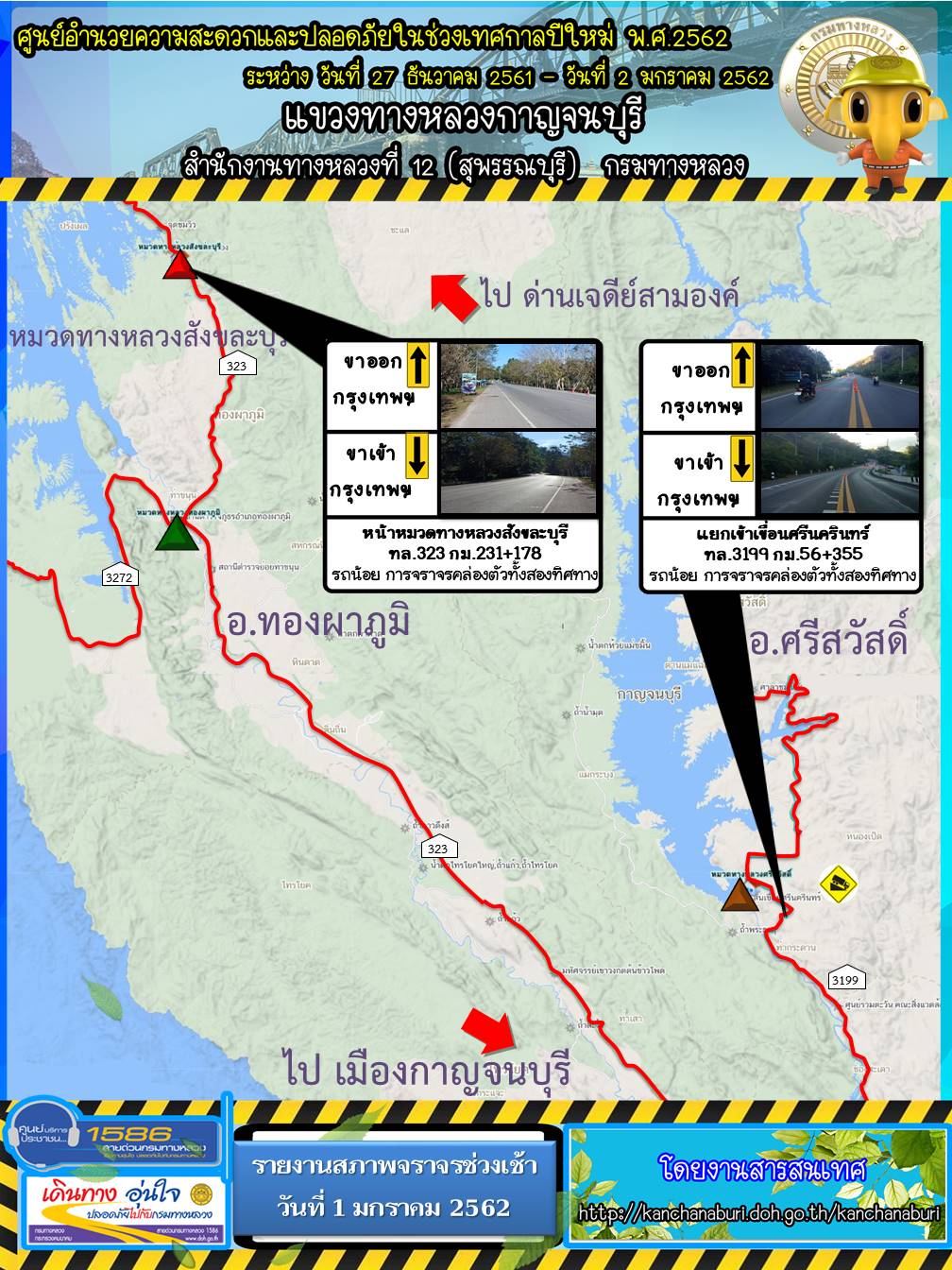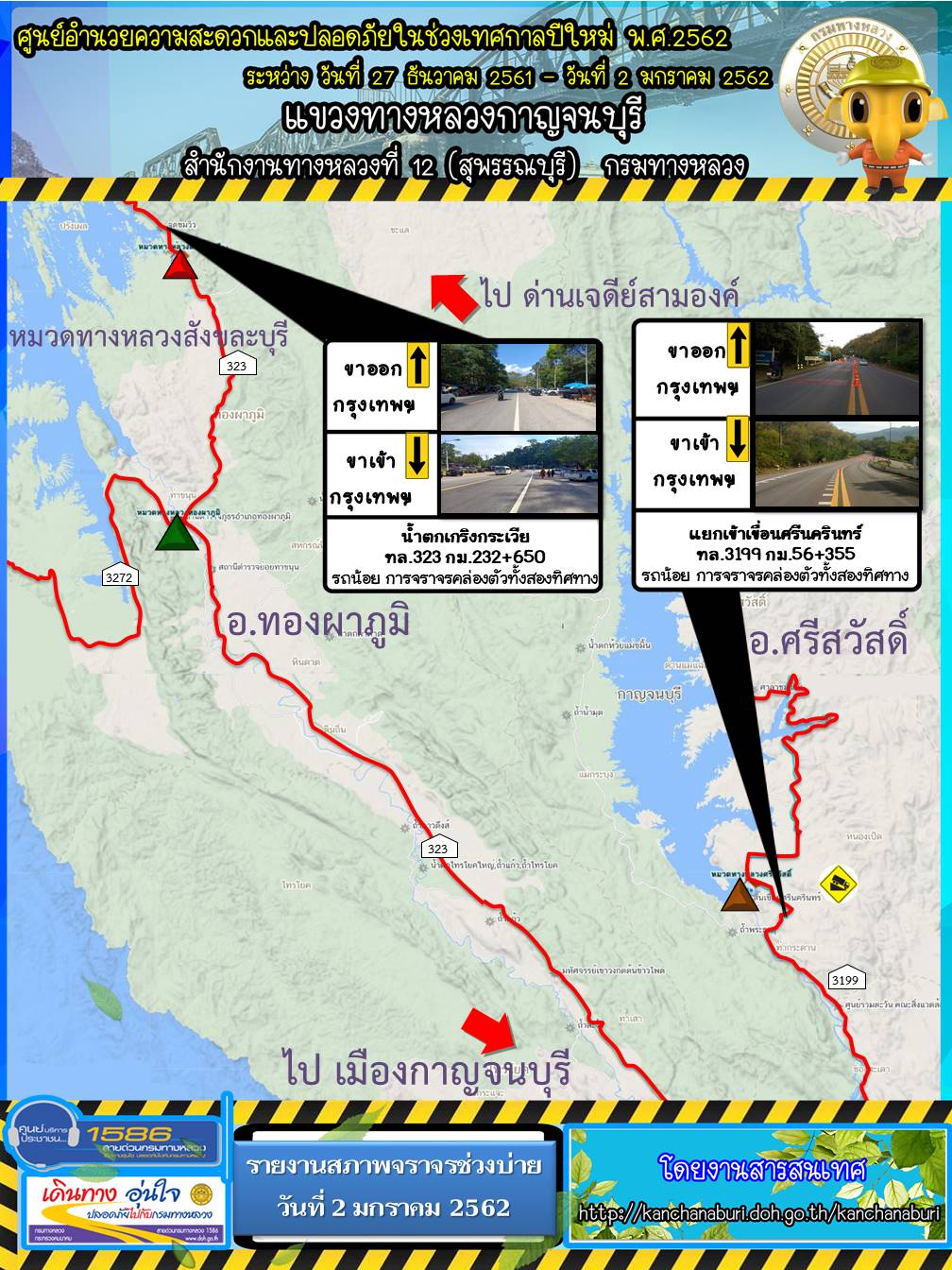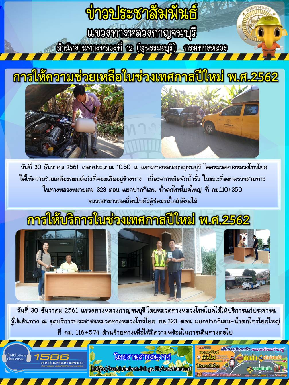แขวงทางหลวงกาญจนบุรี โดยหมวดทางหลวงไทรโยคให้ความช่วยและการบริการในช่วงเทศกาลปีใหม่ 2562 30/12/61