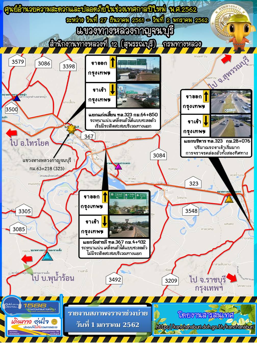 รายงานสภาพจราจรรอบบ่าย วันที่ 1 มกราคม 2562