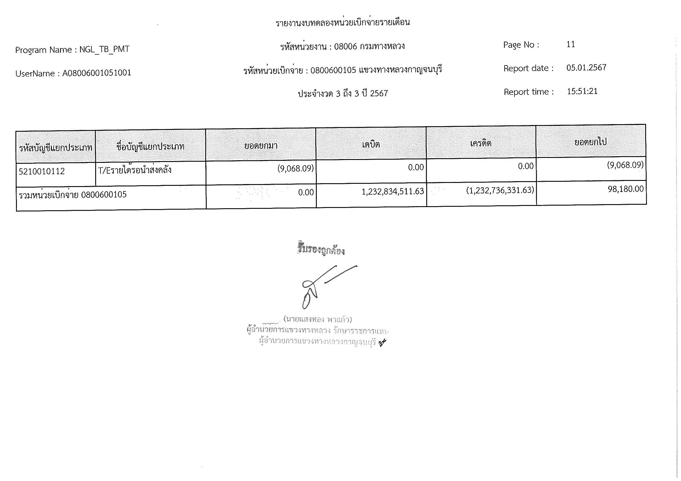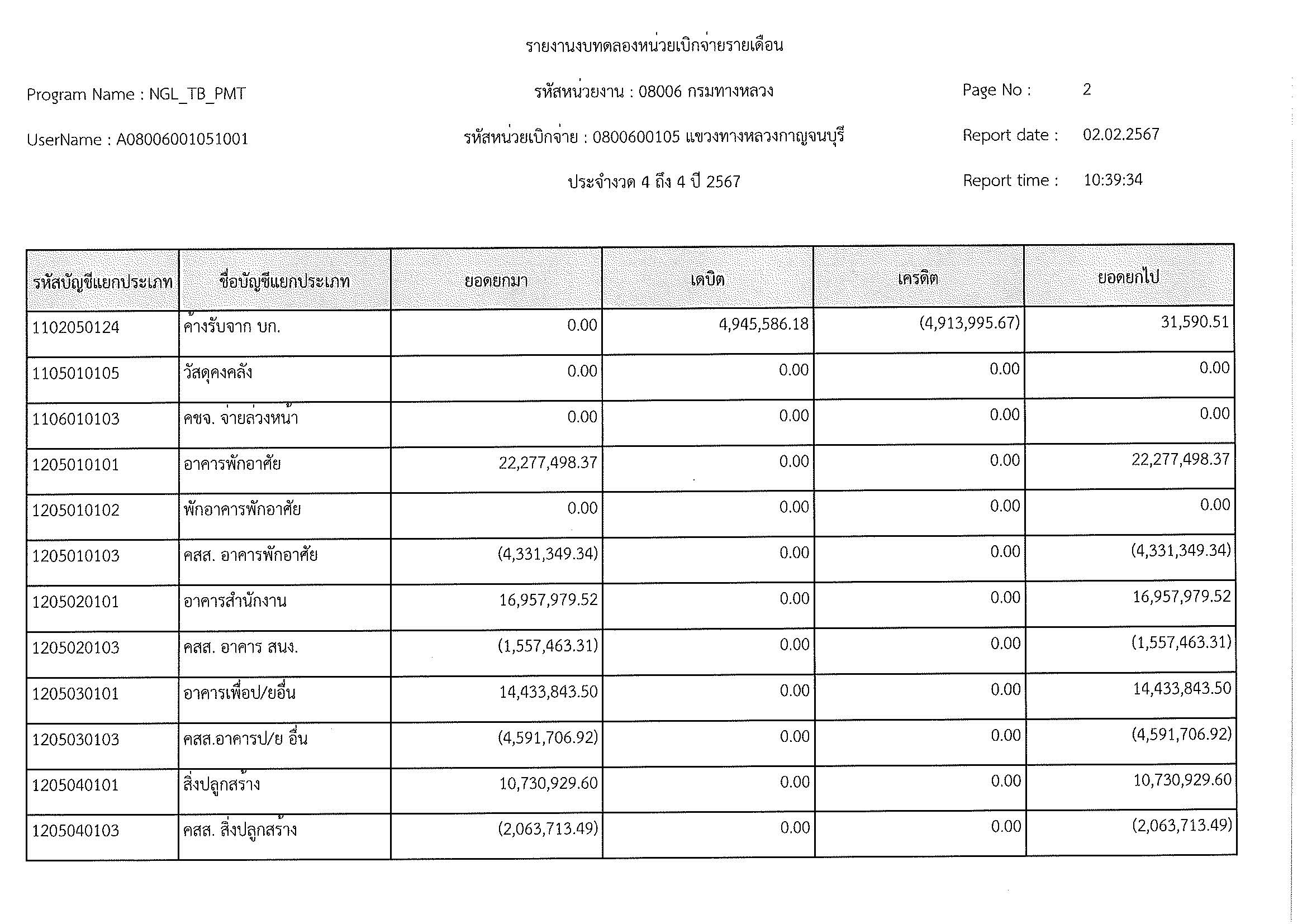 รายงานงบทดลองหน่วยเบิจจ่ายรายเดือน