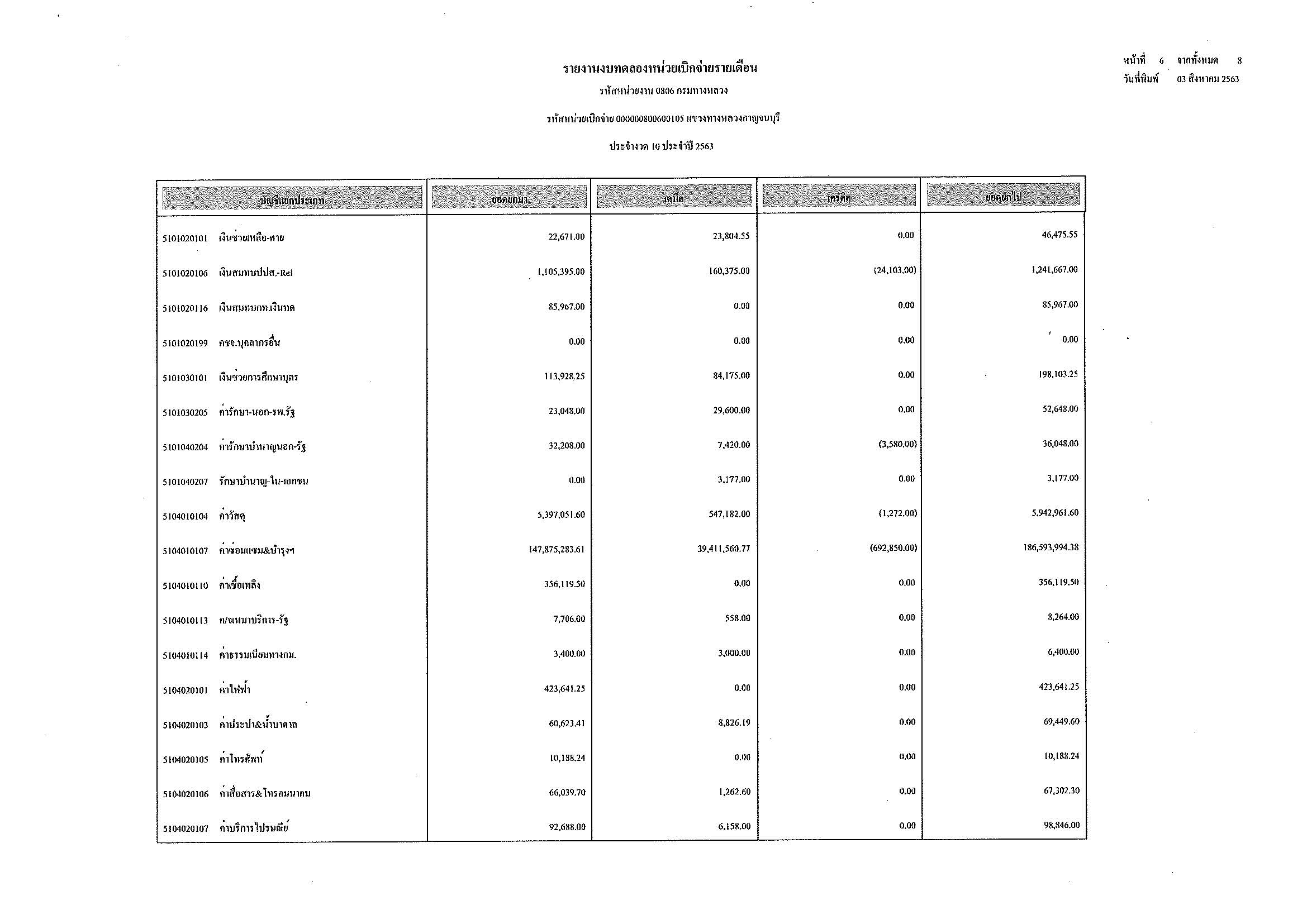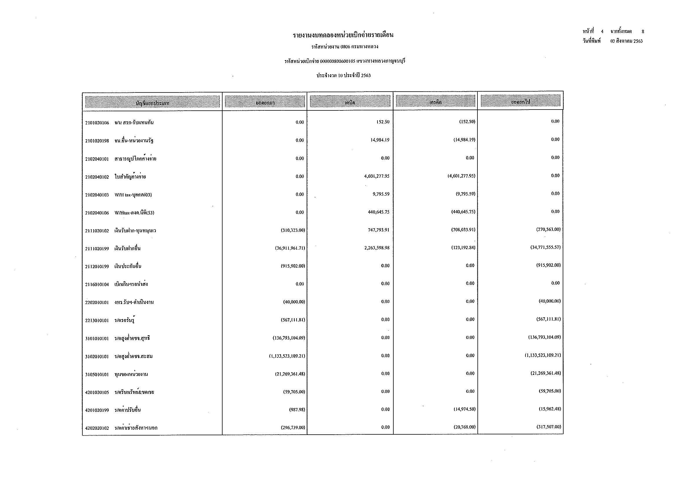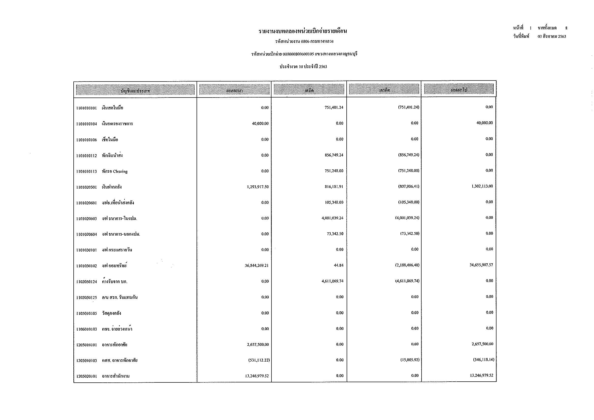 รายงานงบทดลองหน่วยเบิกจ่ายรายเดือน ประจำงวด 10 ประจำปีที่ 2563