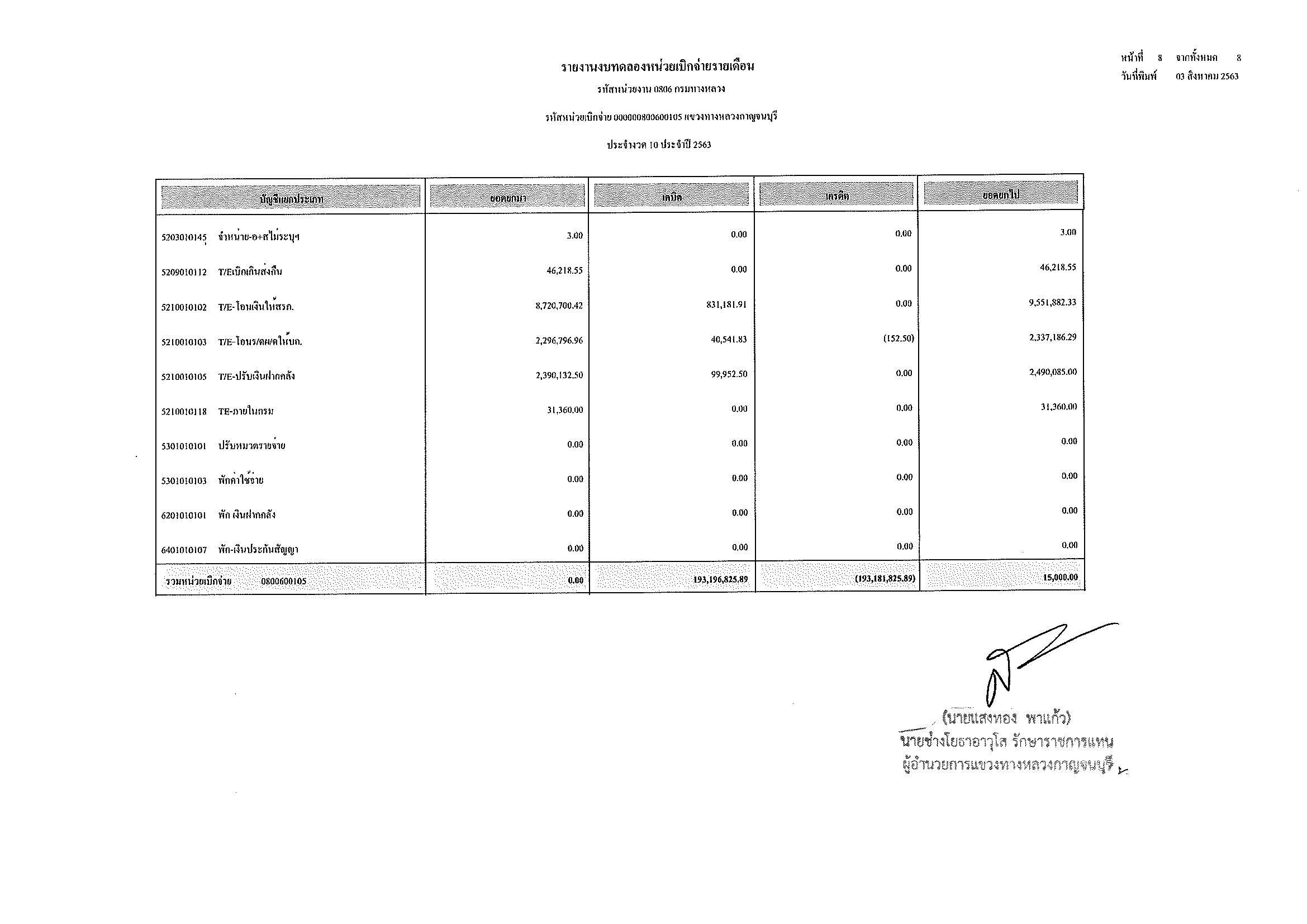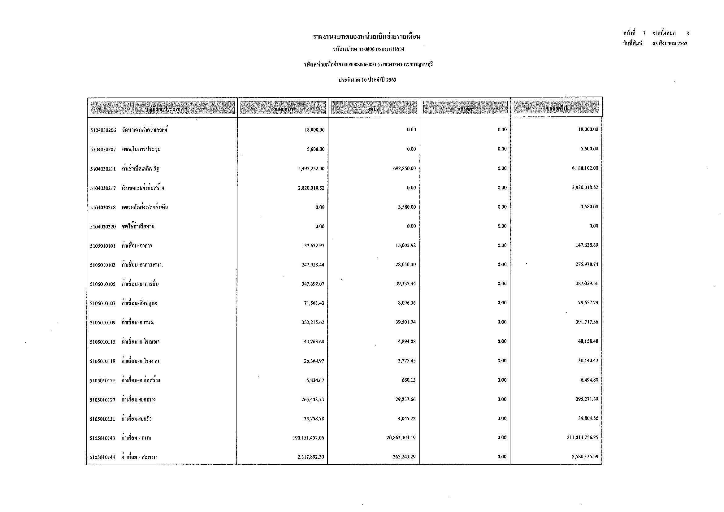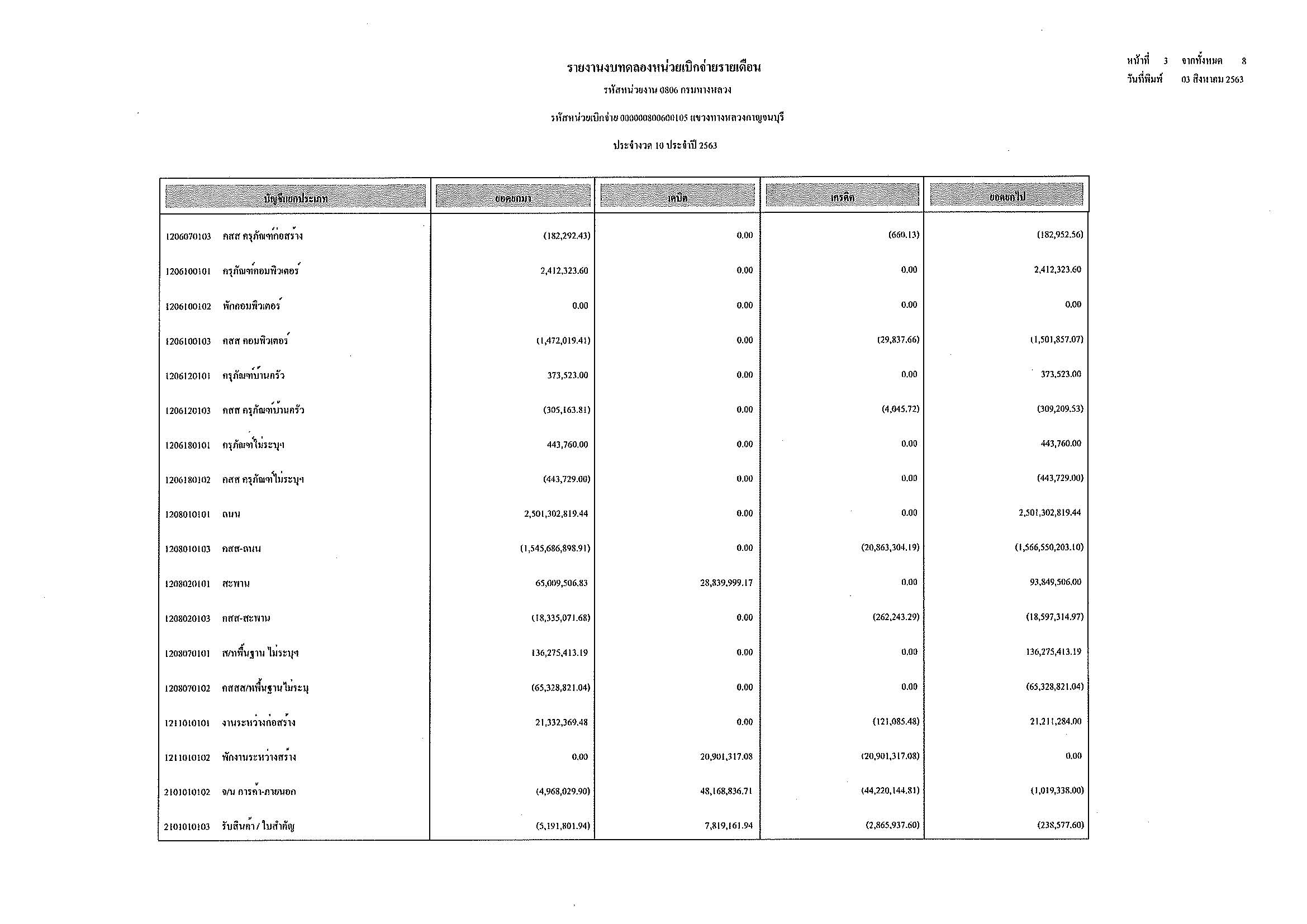 รายงานงบทดลองหน่วยเบิกจ่ายรายเดือน ประจำงวด 10 ประจำปีที่ 2563