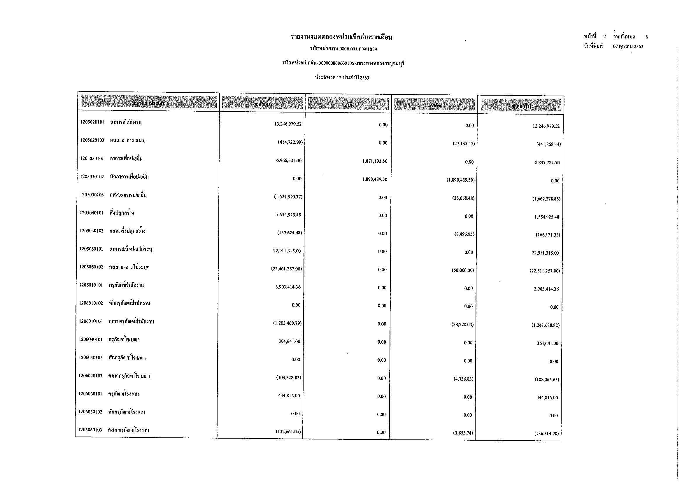รายงานงบทดลองหน่วยเบิกจ่ายรายเดือน ประจำงวด 12 ประจำปีที่ 2563
