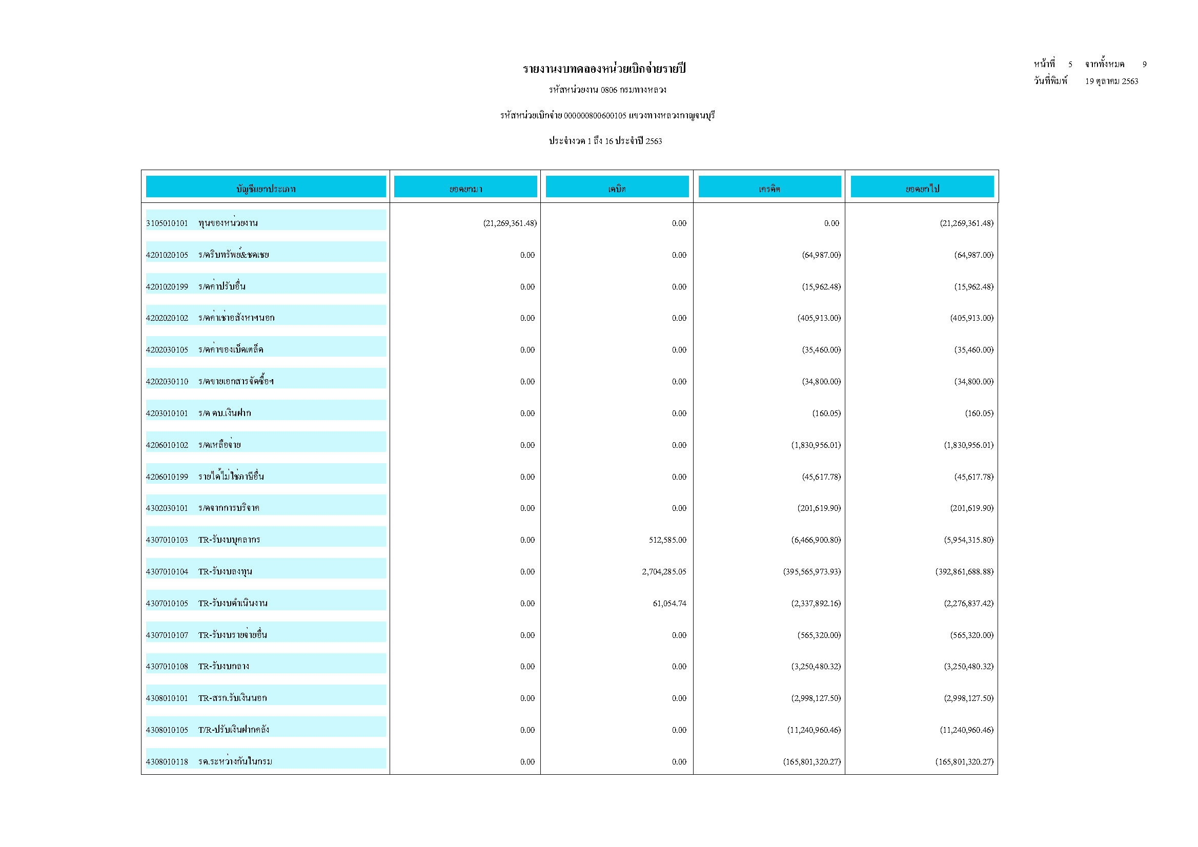 ข้อมูลข่าว : รายงานงบทดลองหน่วยเบิกจ่ายรายปี ประจำงวด 1 ถึง 16 ประจำปีที่ 2563