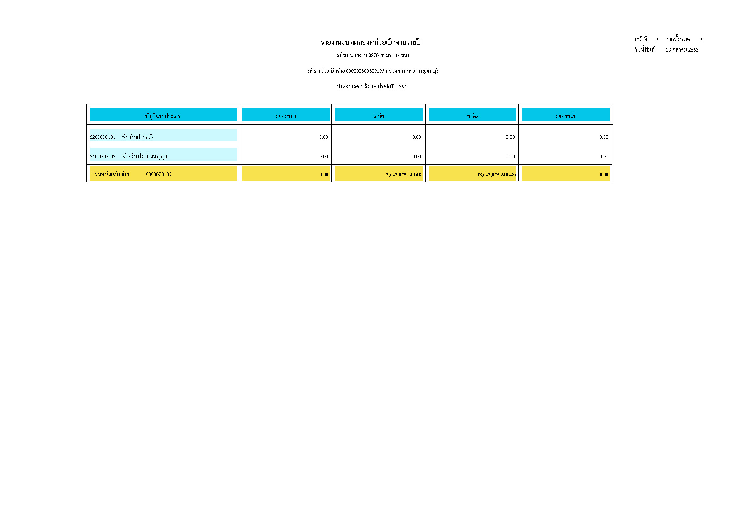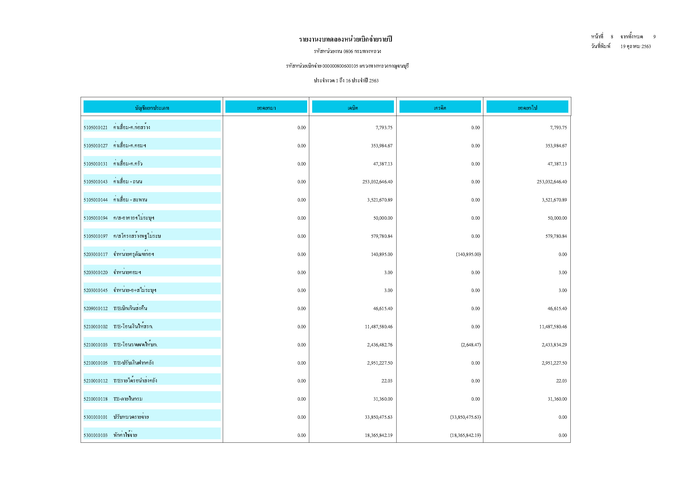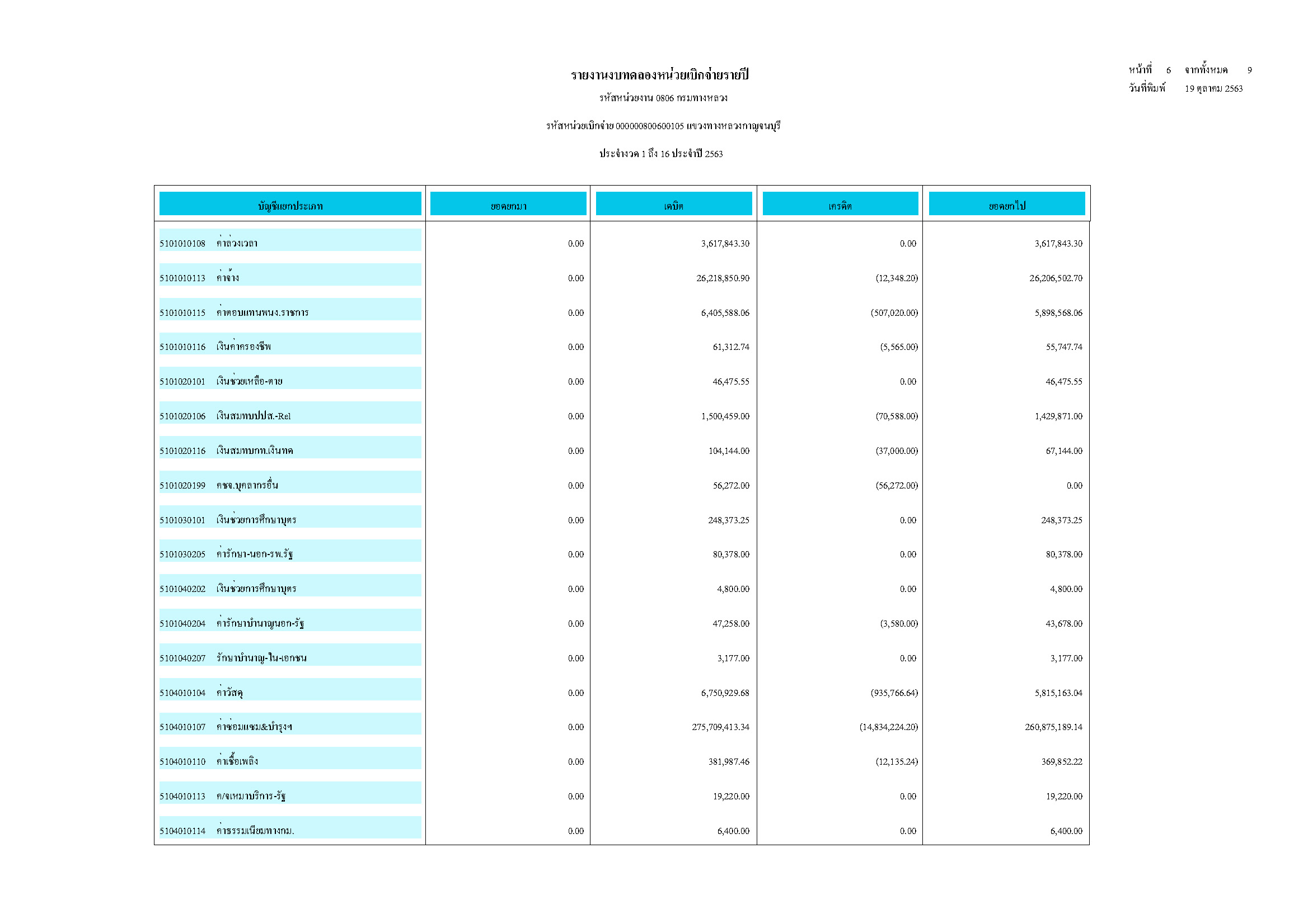 รายงานงบทดลองหน่วยเบิกจ่ายรายปี ประจำงวด 1 ถึง 16 ประจำปีที่ 2563