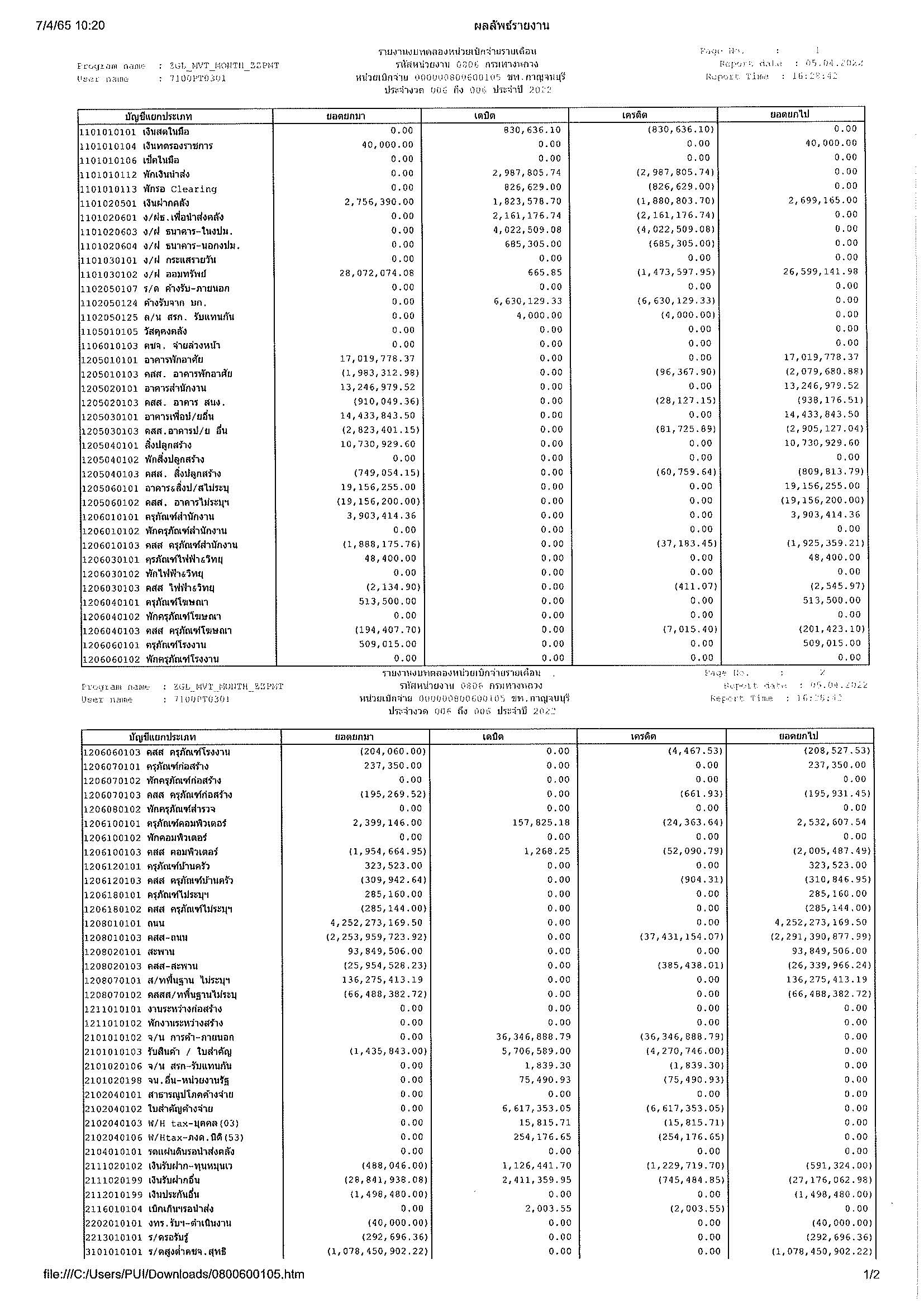 รายงานงบทดลองหน่วยเบิกจ่ายรายเดือน ประจำงวด 6 ประจำปีที่ 2565