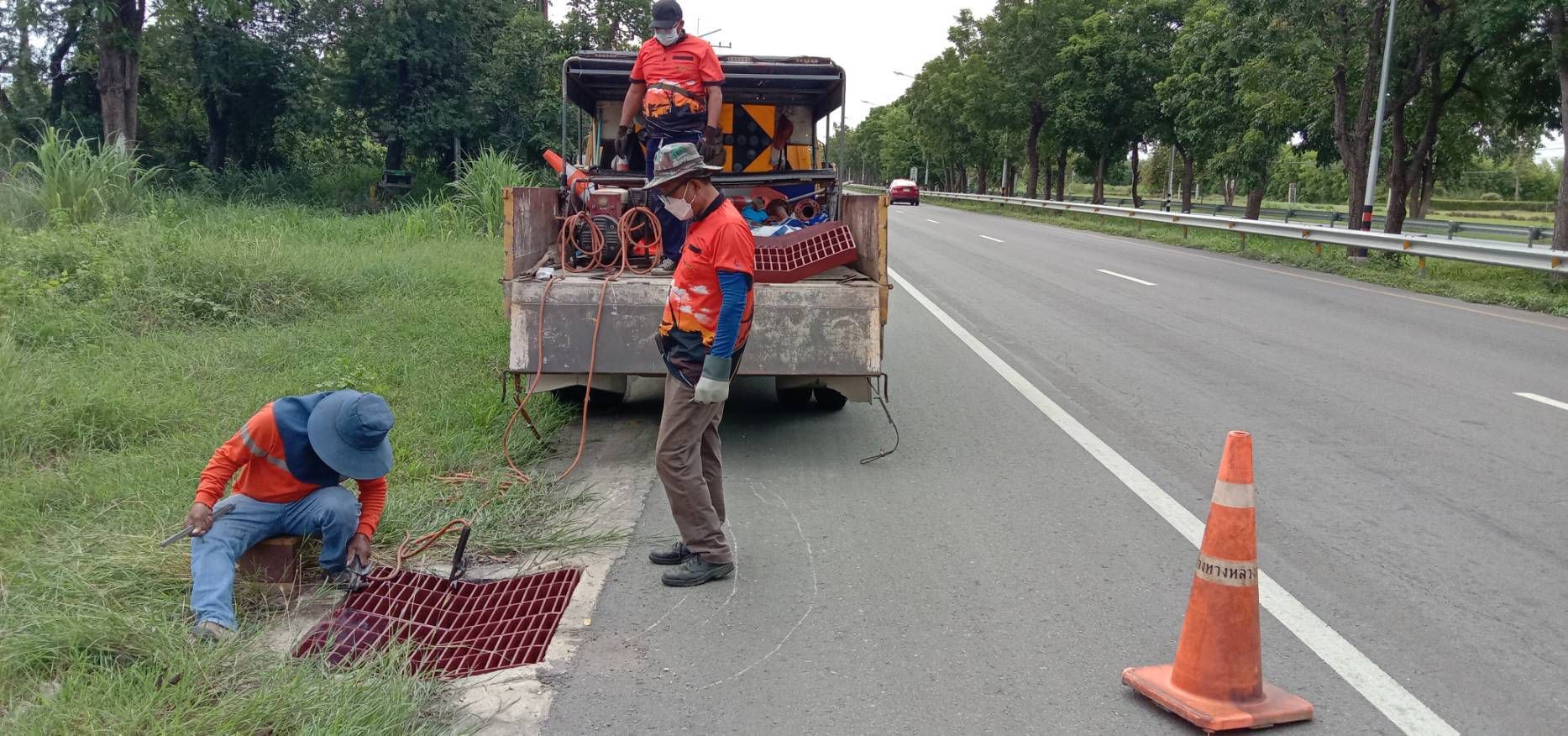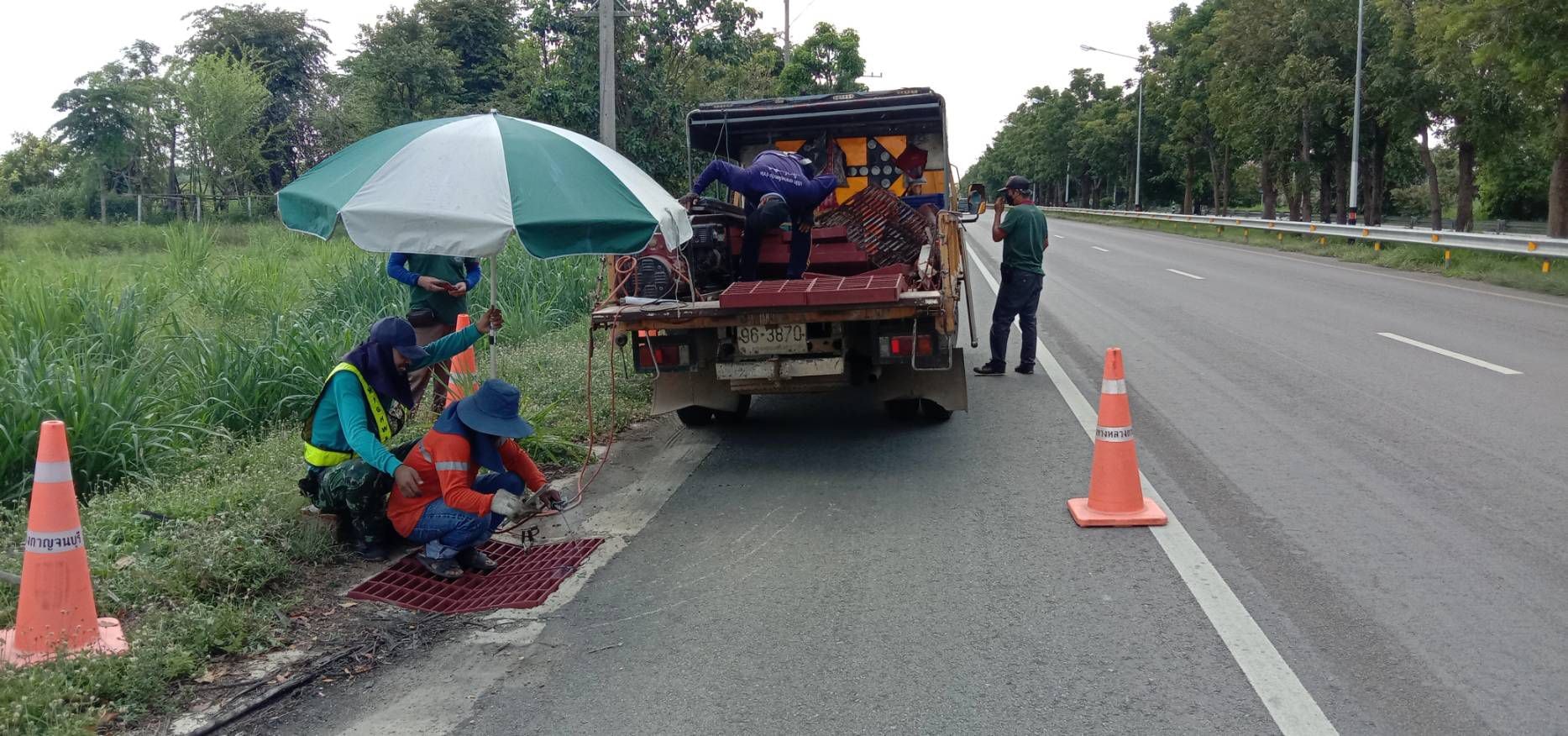 นายแสงทอง พาแก้ว ผู้อำนวยการแขวงทางหลวงกาญจนบุรี ห่วงใยผู้สัญจรตามท้องถนน สั่งผลิตติดตั้งฝาตะแกรงท่อระบายน้ำ และติดตั้ง 114 เรียบร้อย