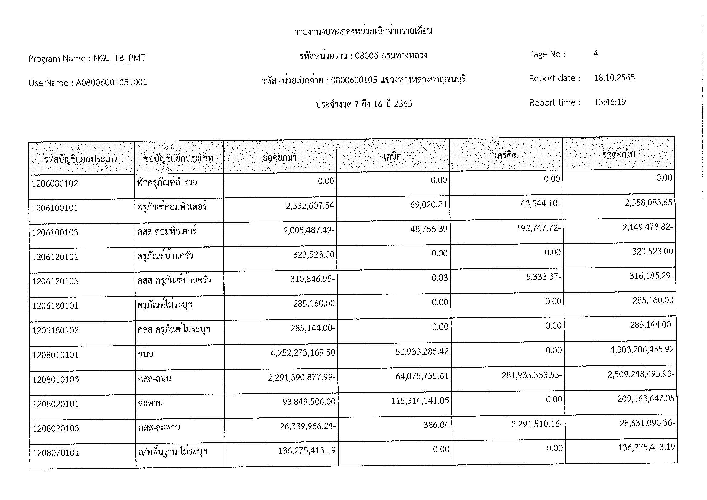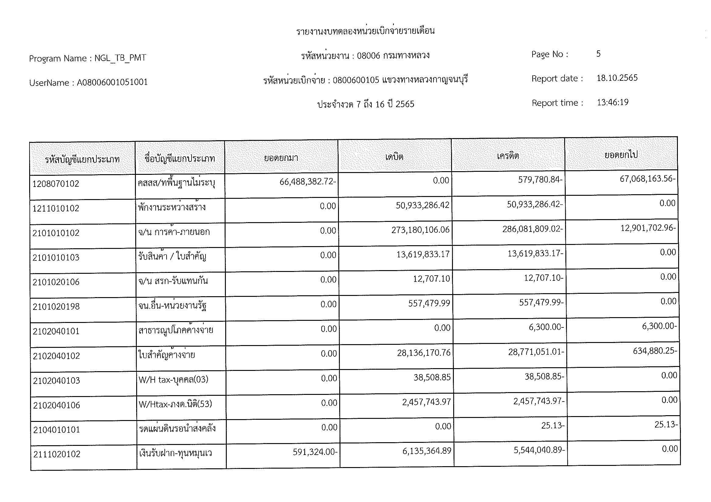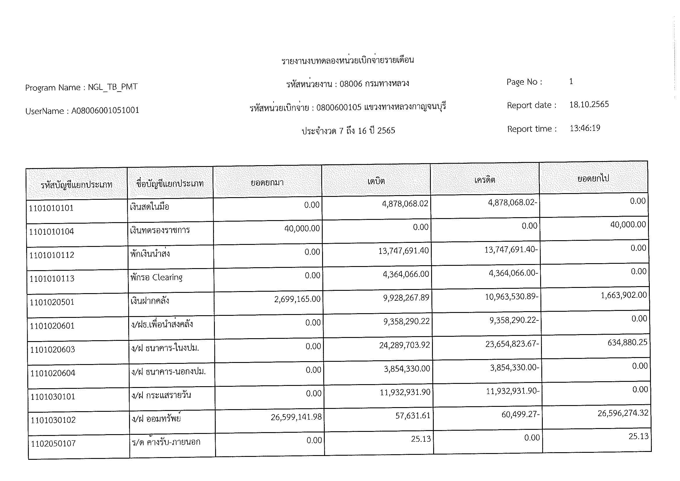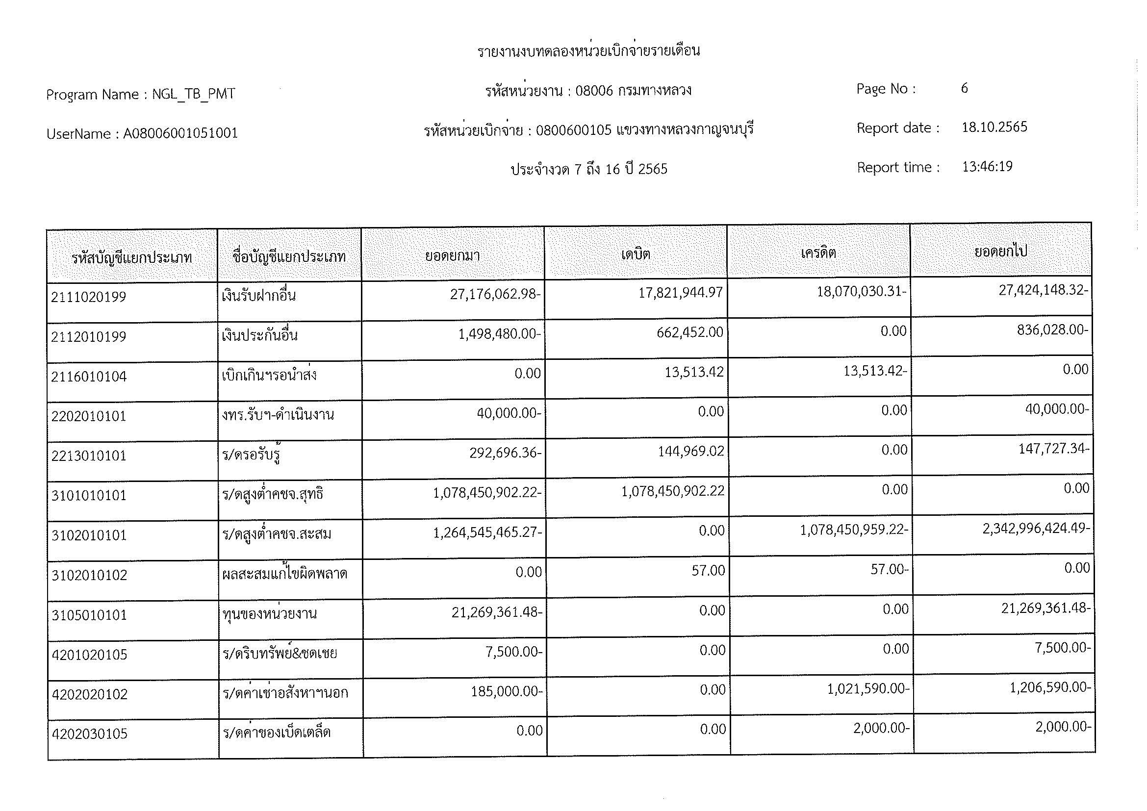 รายงานงบทดลองหน่วยเบิกจ่ายรายเดือน ประจำงวด 12 ประจำปีที่ 2565