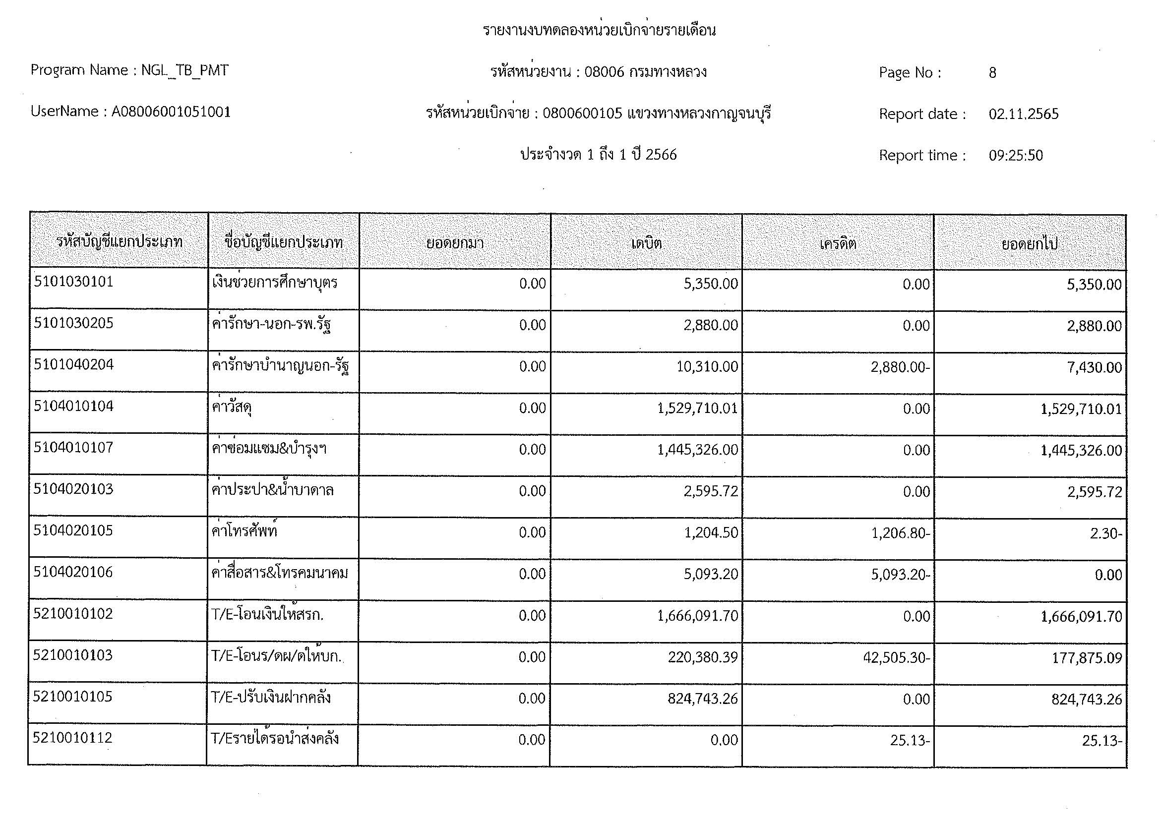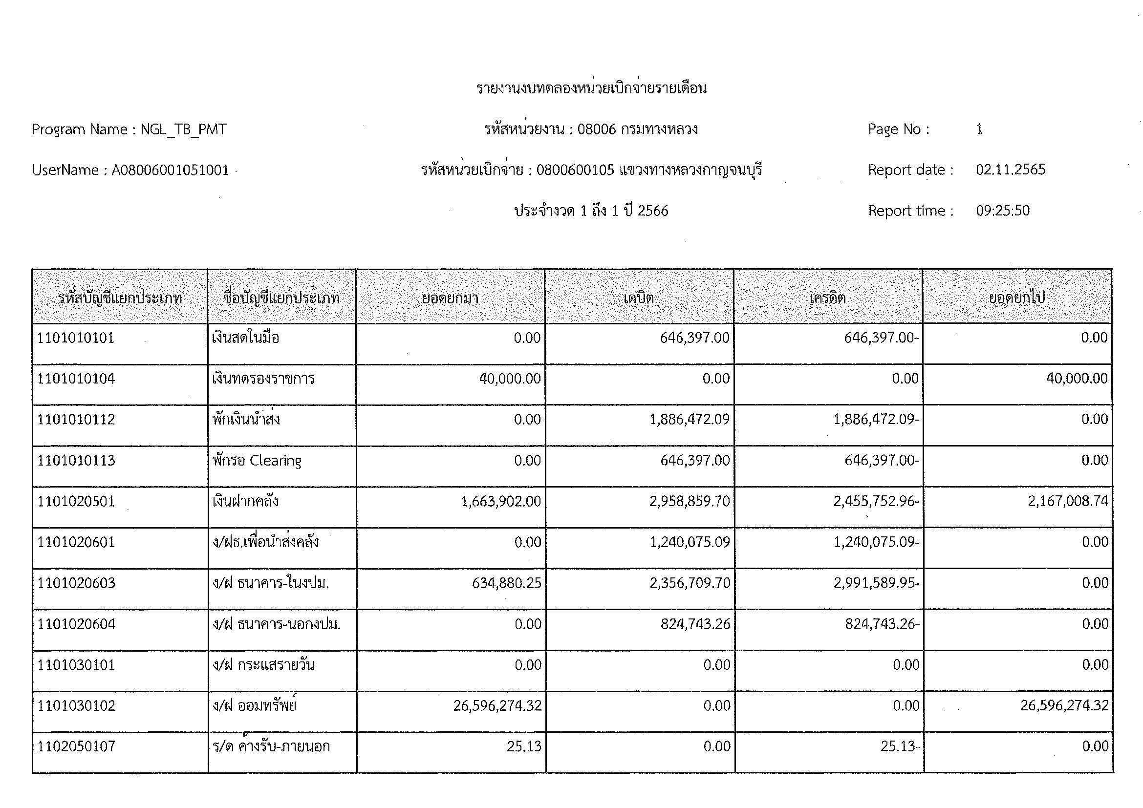 ข้อมูลข่าว : รายงานงบทดลองประจำเดือน ตุลาคม ประจำปีที่ 2565