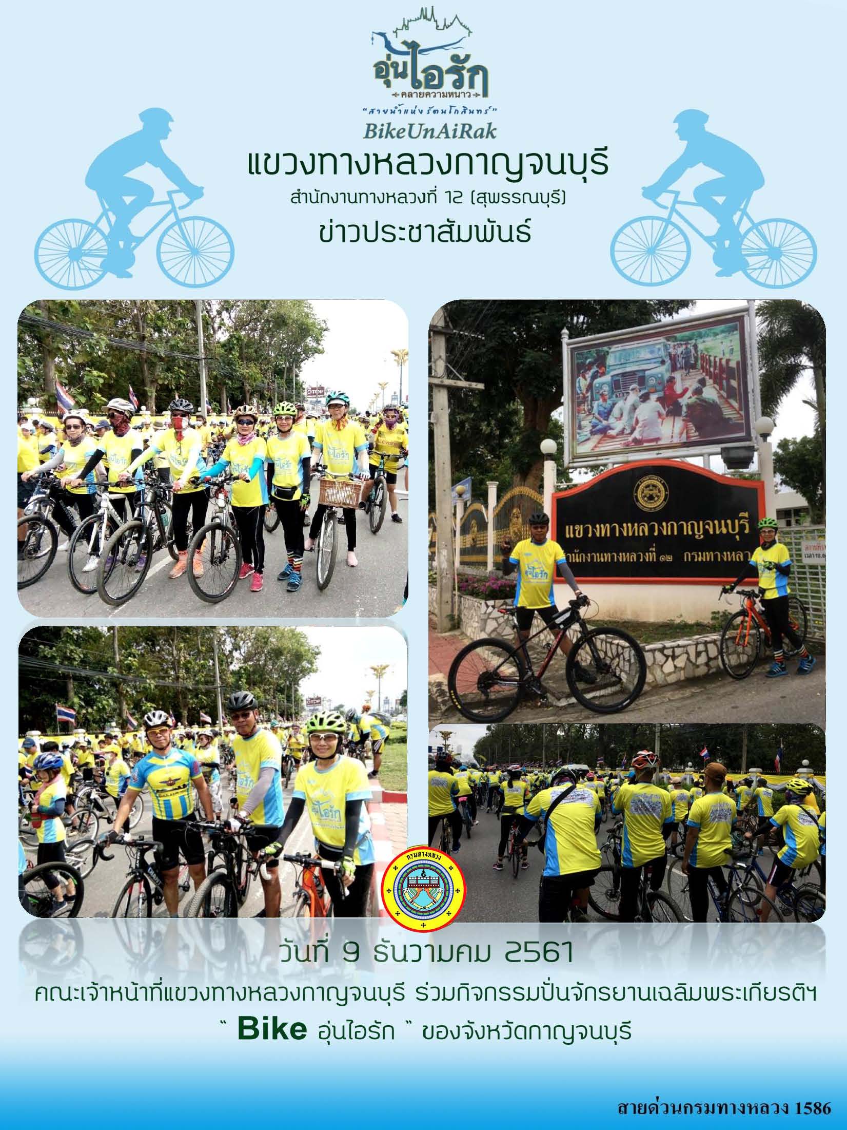 คณะเจ้าหน้าที่แขวงทางหลวงกาญจนบุรี ร่วมกิจกรรมปั่นจักรยานเฉลิมพระเกียรติฯ "Bike อุ่นไอรัก" ของจังหวัดกาญจนบุรี 9/12/61