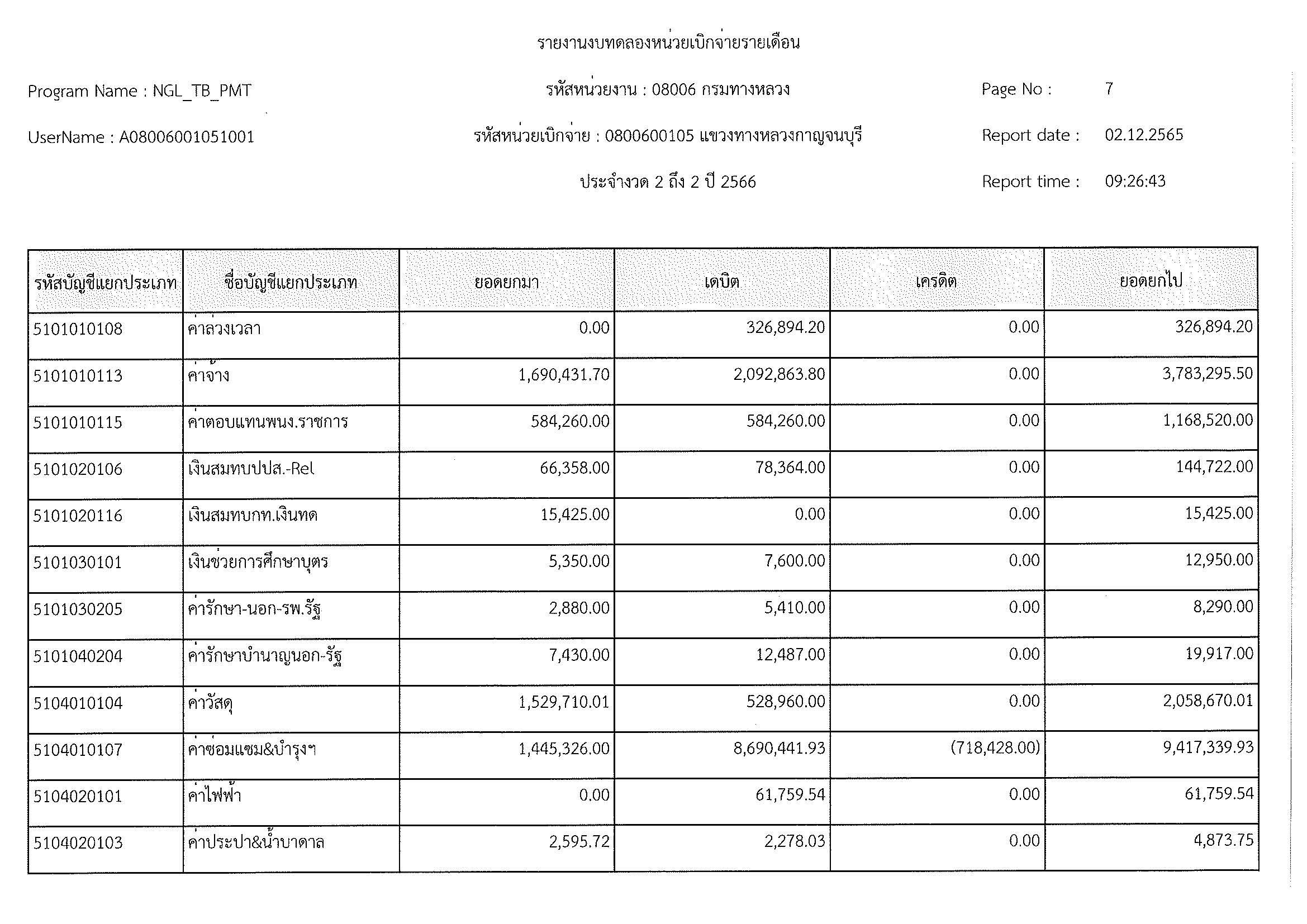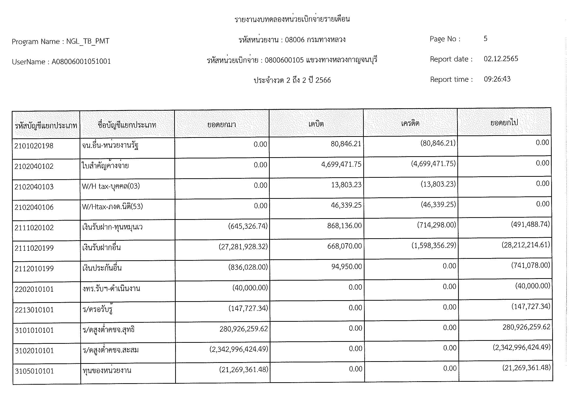 ข้อมูลข่าว : รายงานงบทดลอง เดือนพฤศจิกายน 2565